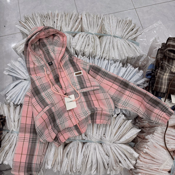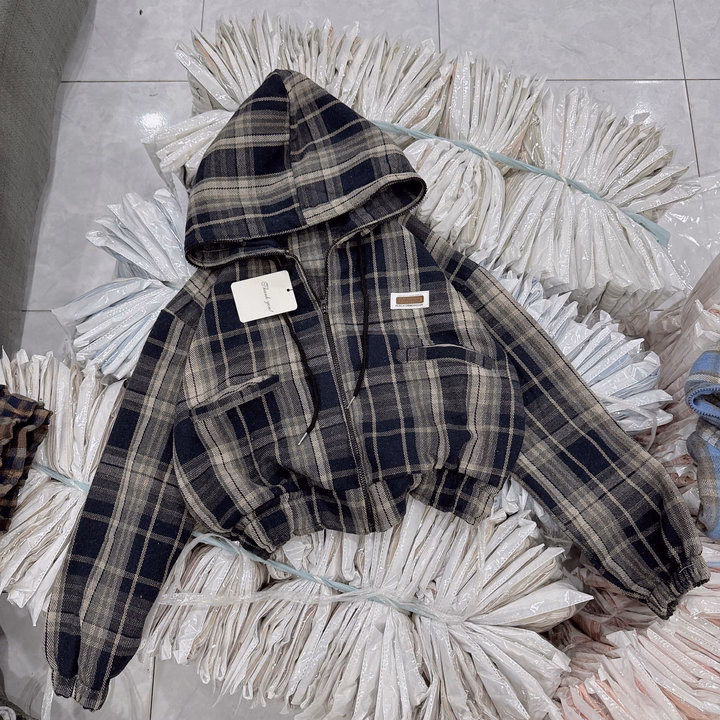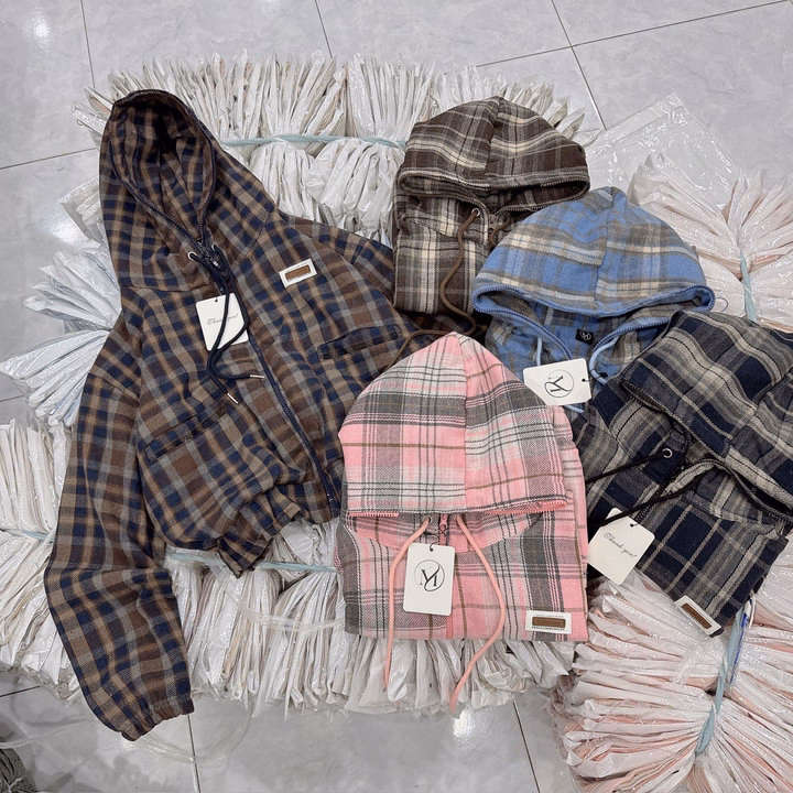 Áo khoác hoodie vải flannel kẻ caro dáng croptop siêu xinh – item không thể thiếu cho mùa thu đông này!
