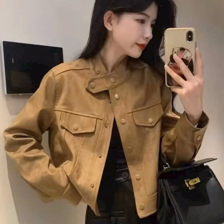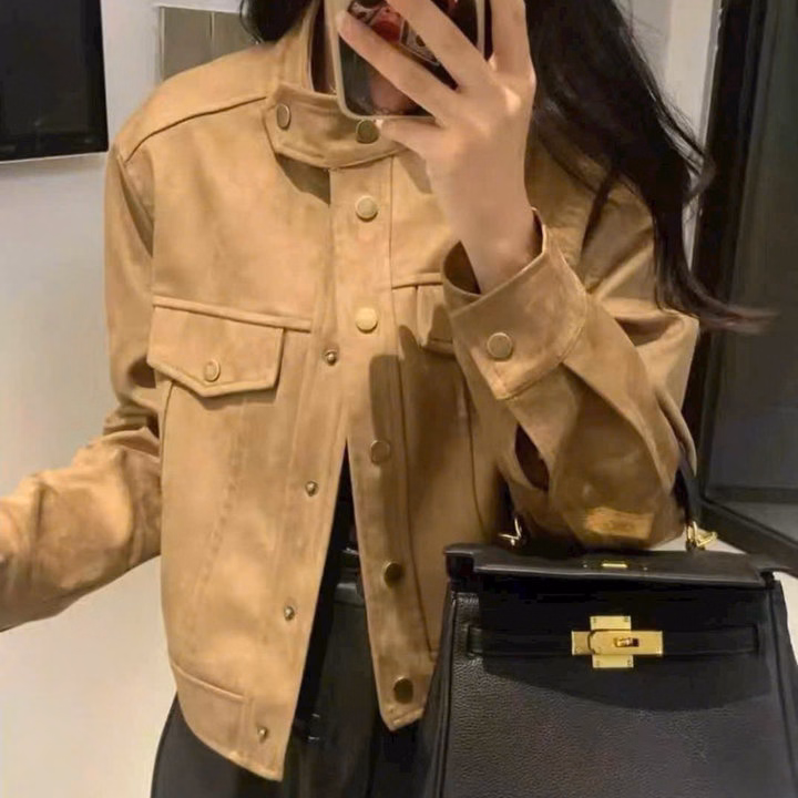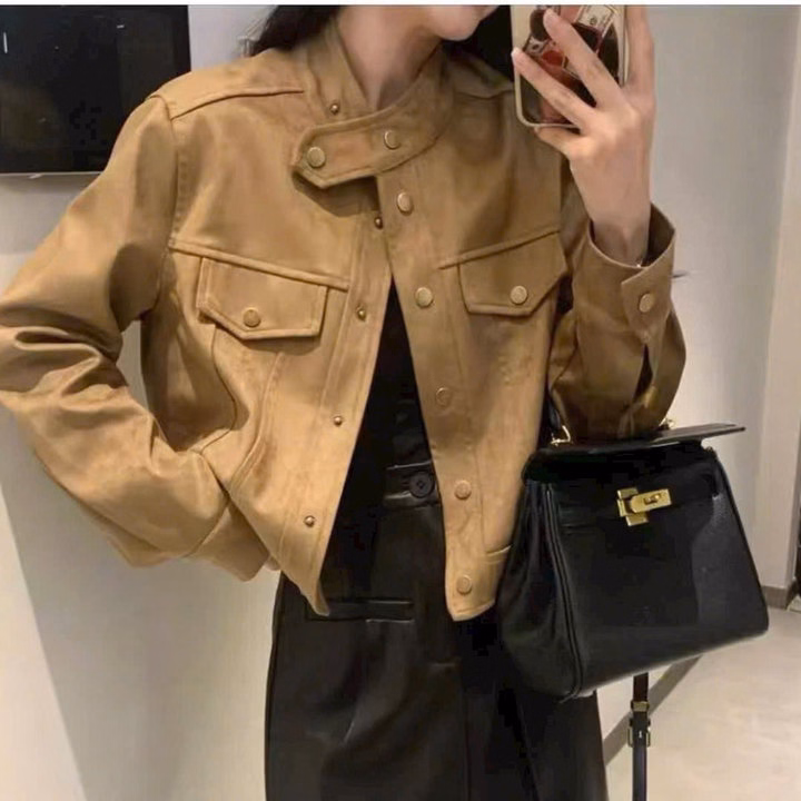 Áo Khoác Nữ Vải Da Lộn Giả Jean 2 Lớp Form Lửng Có Cúc Bấm Cổ Tp60 – Phương Store