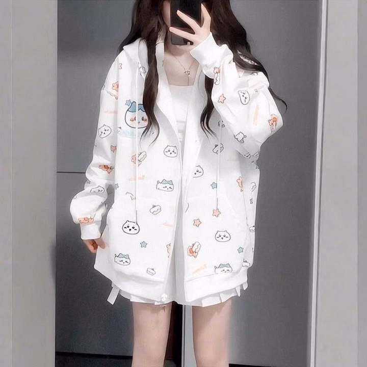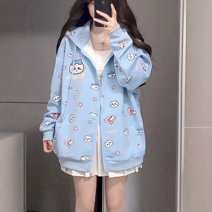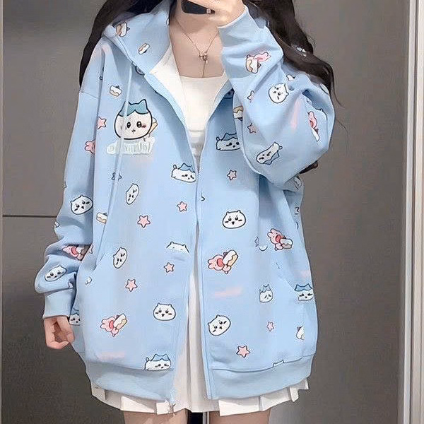 Áo Khoác Nữ Vải Nỉ Ngoại In Hình Cá Heo Mũ Xanh Siêu Xinh Cho Các Nàng Tp54