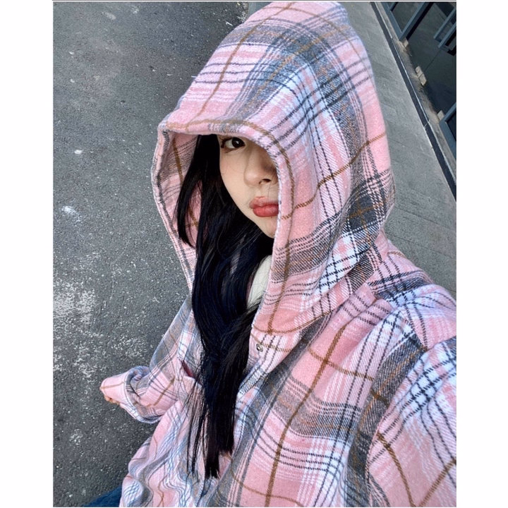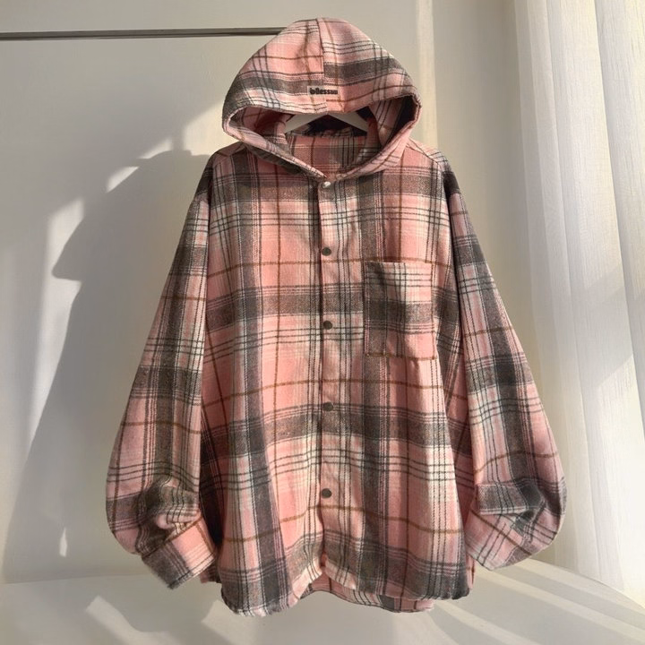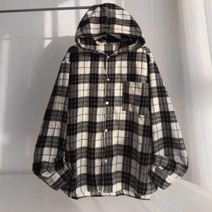 Tên sản phẩm: Áo Khoác Sơ Mi Caro Có Mũ Rộng Vải Kate Bố Dày Dặn Nam Nữ Đều Mặc Được Chống Nắng Tốt Ut40 – Phương Store