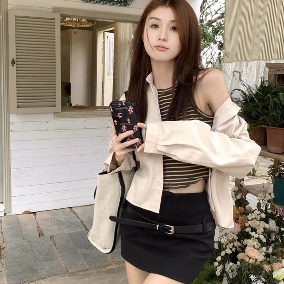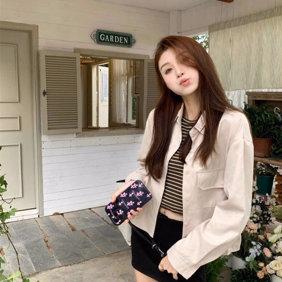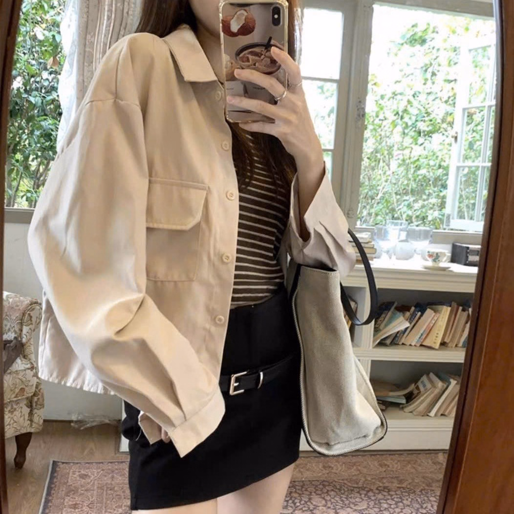 Áo Khoác Sơ Mi Kaki Nữ Trơn Có 2 Túi Trước Cực Hot Với Phong Cách Đơn Giản – Htm Fashion