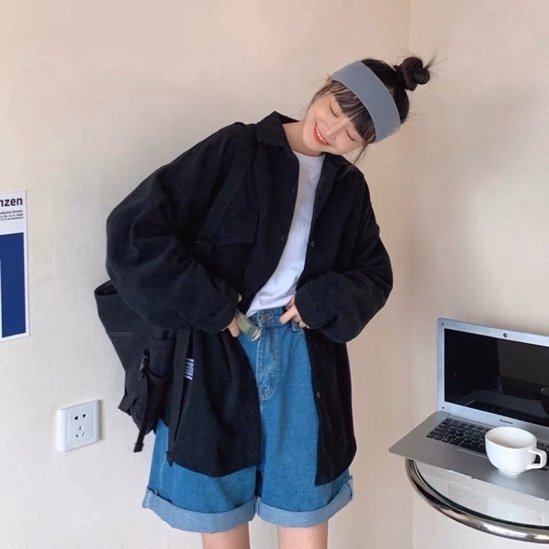 Áo Khoác Sơ Mi Nhung Tăm Gắn Logo Nam Nữ Kiểu Basic Dài Tay, Áo Oversize Sa12 – Sam Store