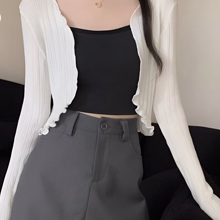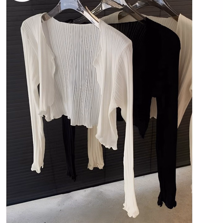 Áo Khoác Tay Dài Crotop Thun Gân Cuốn Biên Nữ Form Lững Gu0987- Sam Store