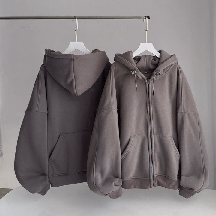 Áo Khoác Trơn Hoodie Zip Nỉ Bông Mũ 2 Lớp Khóa Kéo
