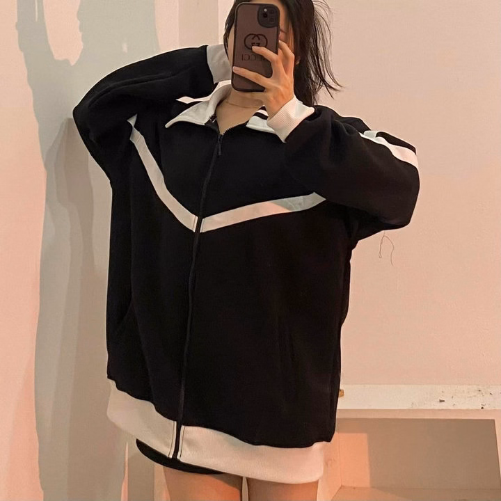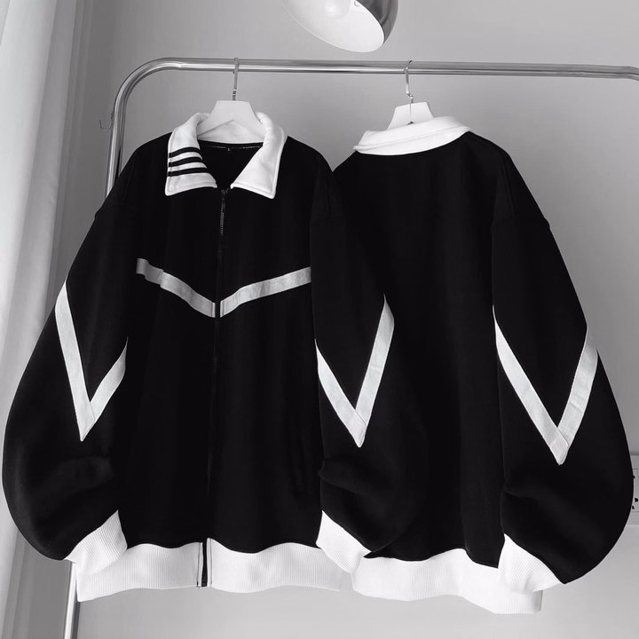 Áo Khoác Zip Nỉ Nam Nữ Form Rộng Phối 3 Sọc Cổ Chạy Viền Tay Phong Cách Mẫu Mới -Htm Fashion