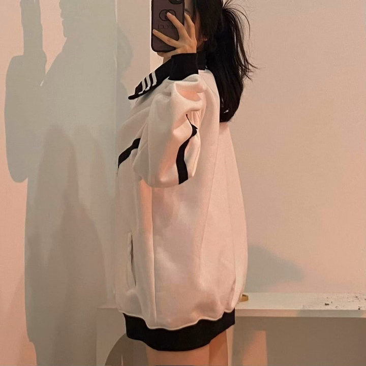 Áo Khoác Dây Kéo Vải Nỉ Phối Sọc Thân In Nổi Chữ Ở Mũ, Có Túi Trong Rộng Tp60 – Golden Dream