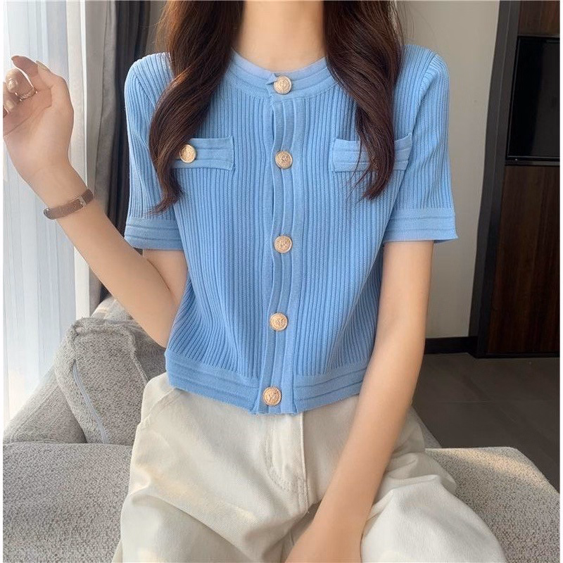 Áo Len Cộc Tay Cổ Tròn 5 Khuy Giữa Nhiều Màu Slcxa180 – Chipxinhxk