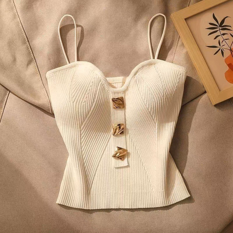 Bạn muốn thêm phần sang trọng và thu hút vào trang phục hàng ngày của mình? Đừng bỏ lỡ chiếc áo len cúp ngực với chi tiết cúc vàng độc đáo này! 💃🌼