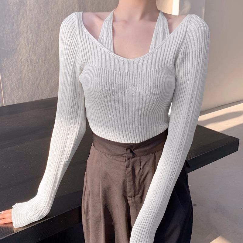 Áo Len Dài Tay Cổ Tim Phối Dây Buộc Phong Cách Hàn Quốc Sldca213 – Diepchi Fashion