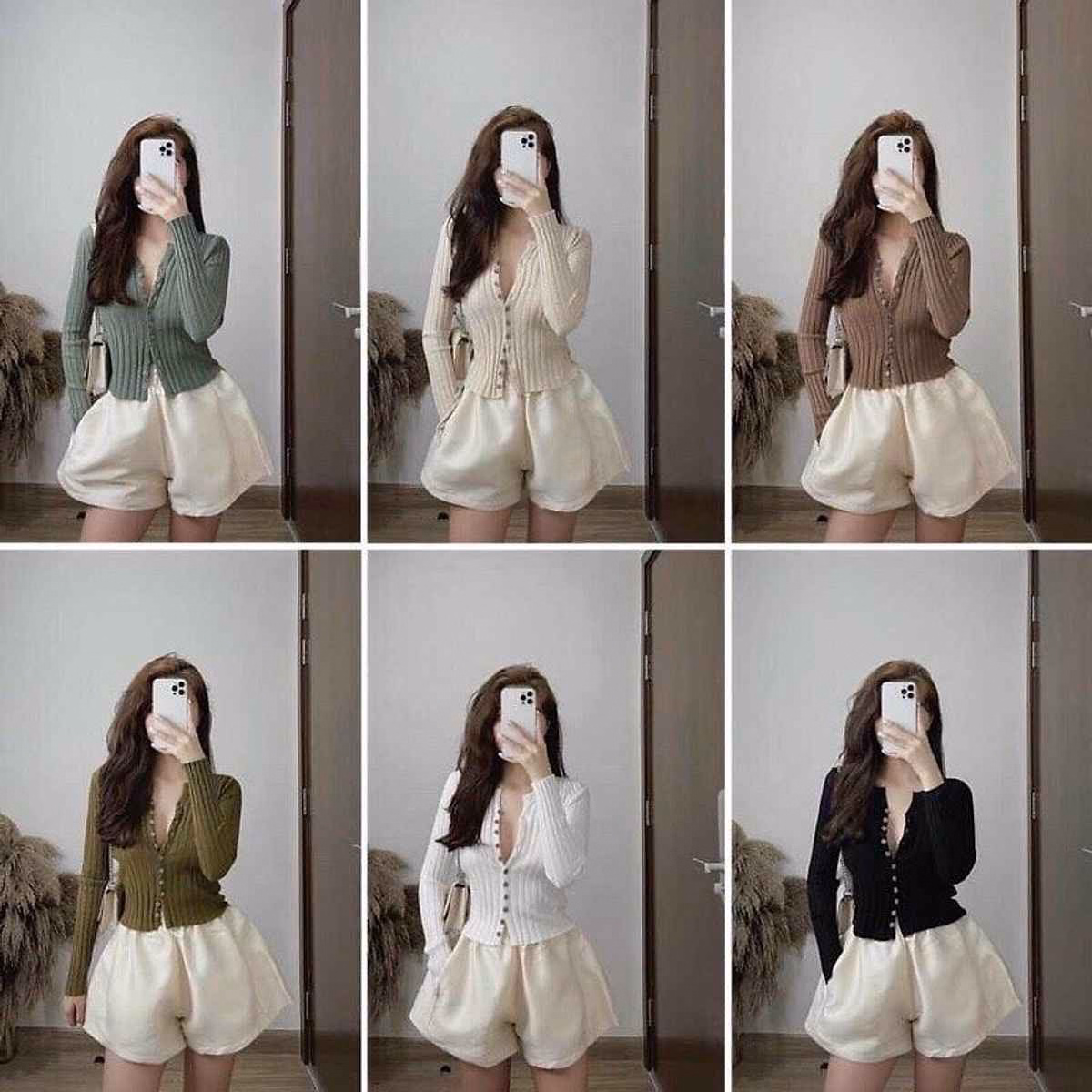 Tên sản phẩm: Áo Len Dài Tay Cổ Tròn Khuy Giữa Cao Cấp Vintage – Chipxinhxk