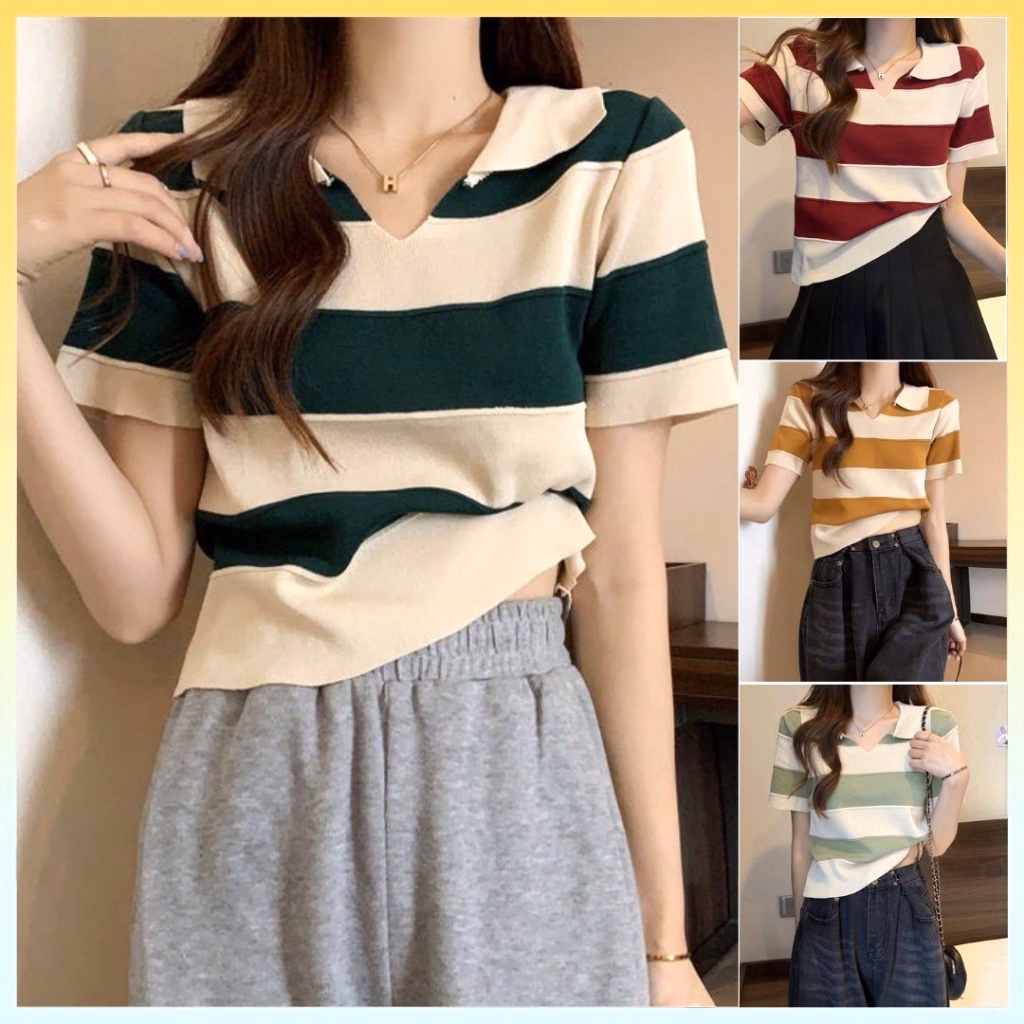 Áo Len Dệt Kim Cổ Bẻ Kẻ Ngang To Nhiều Màu Sldca183 – Diepchi Fashion