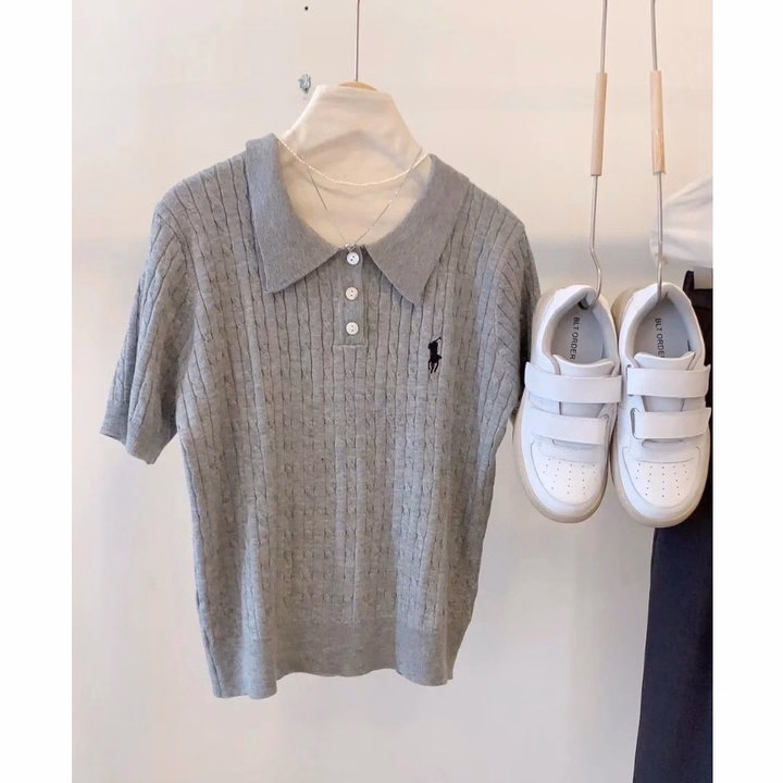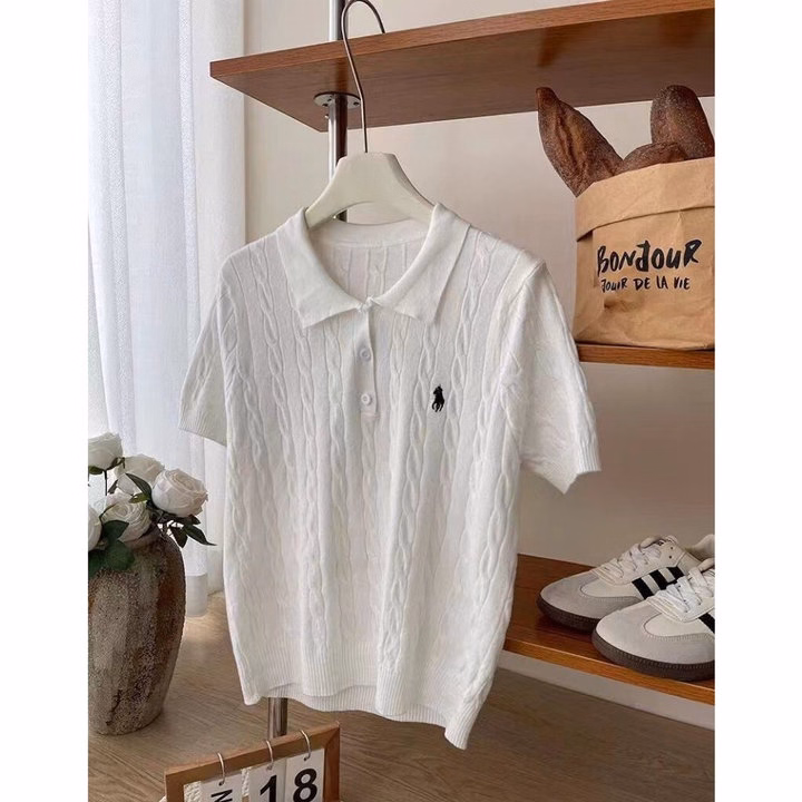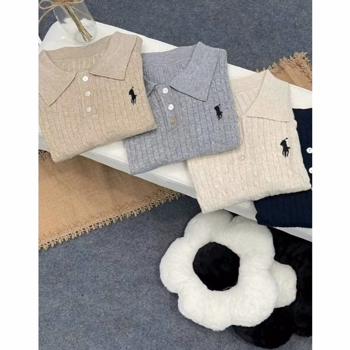 Áo Polo Len Dệt Kim Cổ Bẻ Thêu Ngựa
