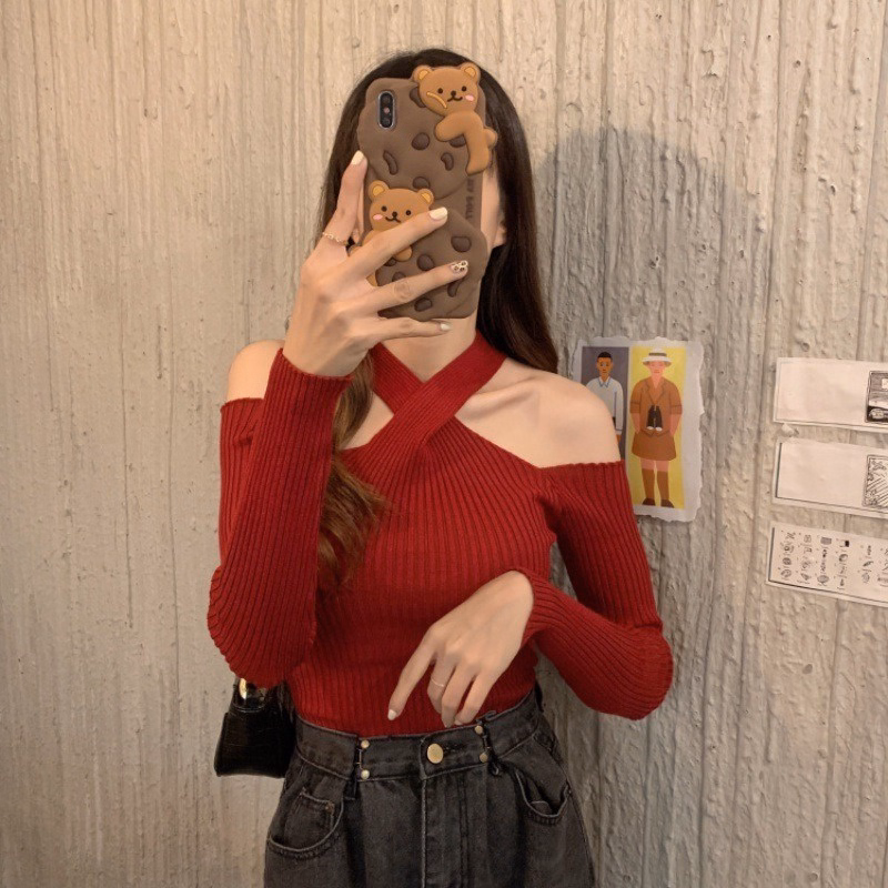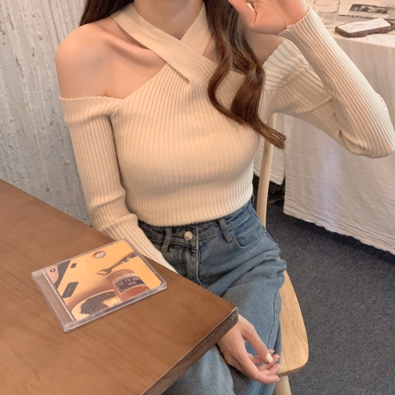 Áo Len Dệt Kim Khoét Vai Kiểu Dáng Sexy Cho Bạn Nữ