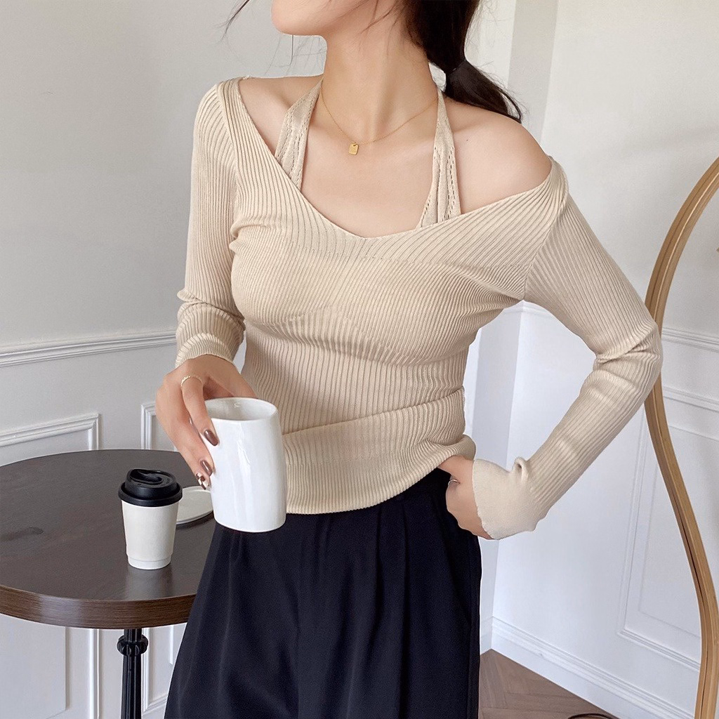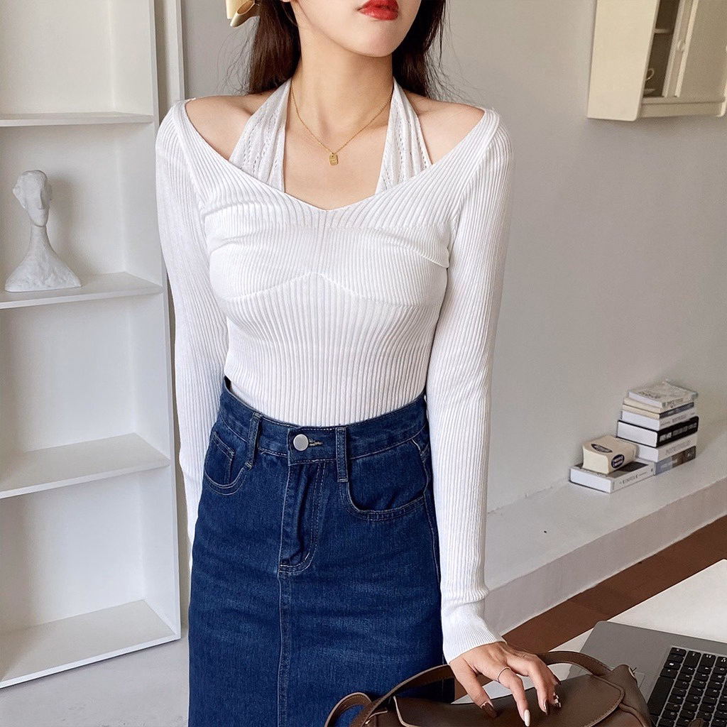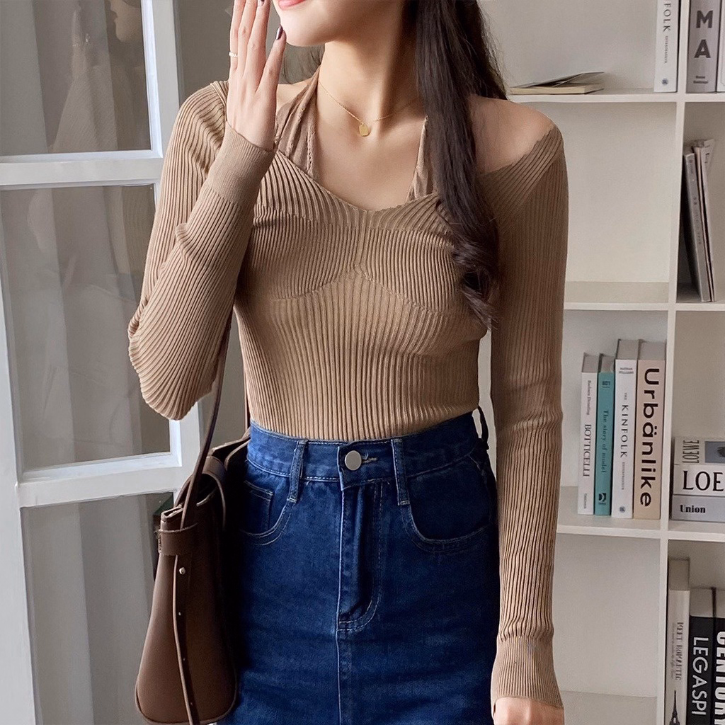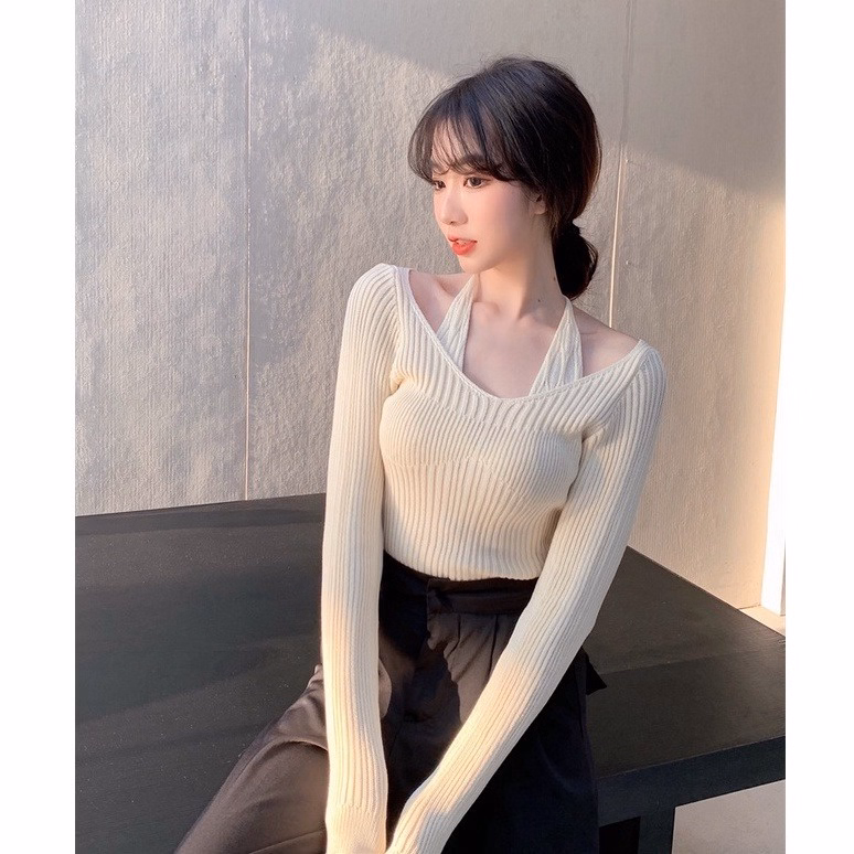 Áo Len Dệt Kim Phối Dây Buộc Cổ Kiểu Dáng Tiểu Thư Cho Bạn Nữ Slcxa213 – Chipxinhxk