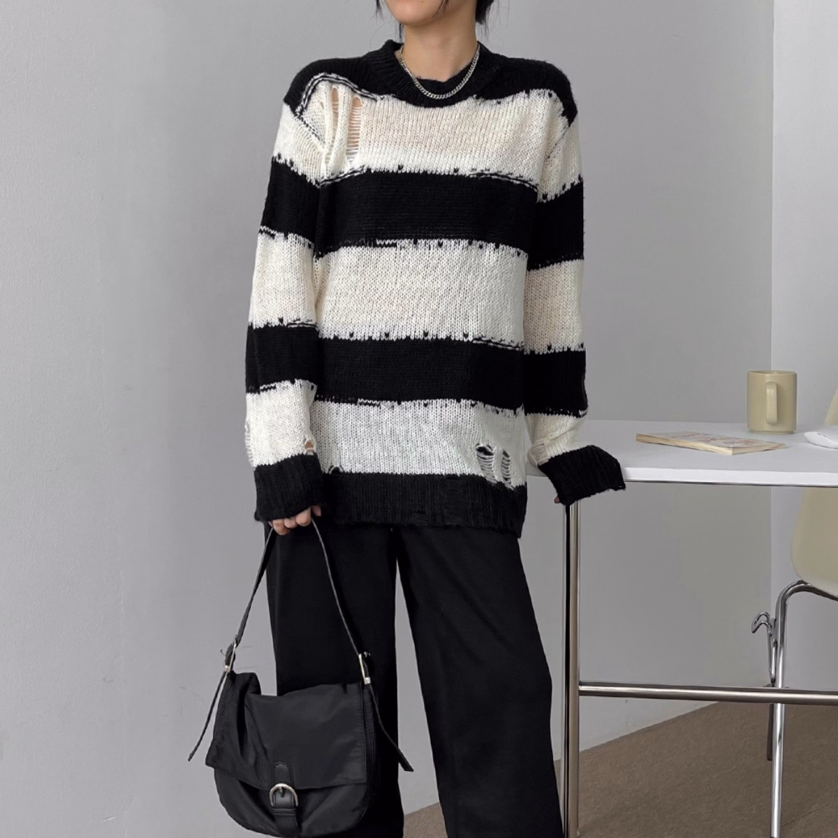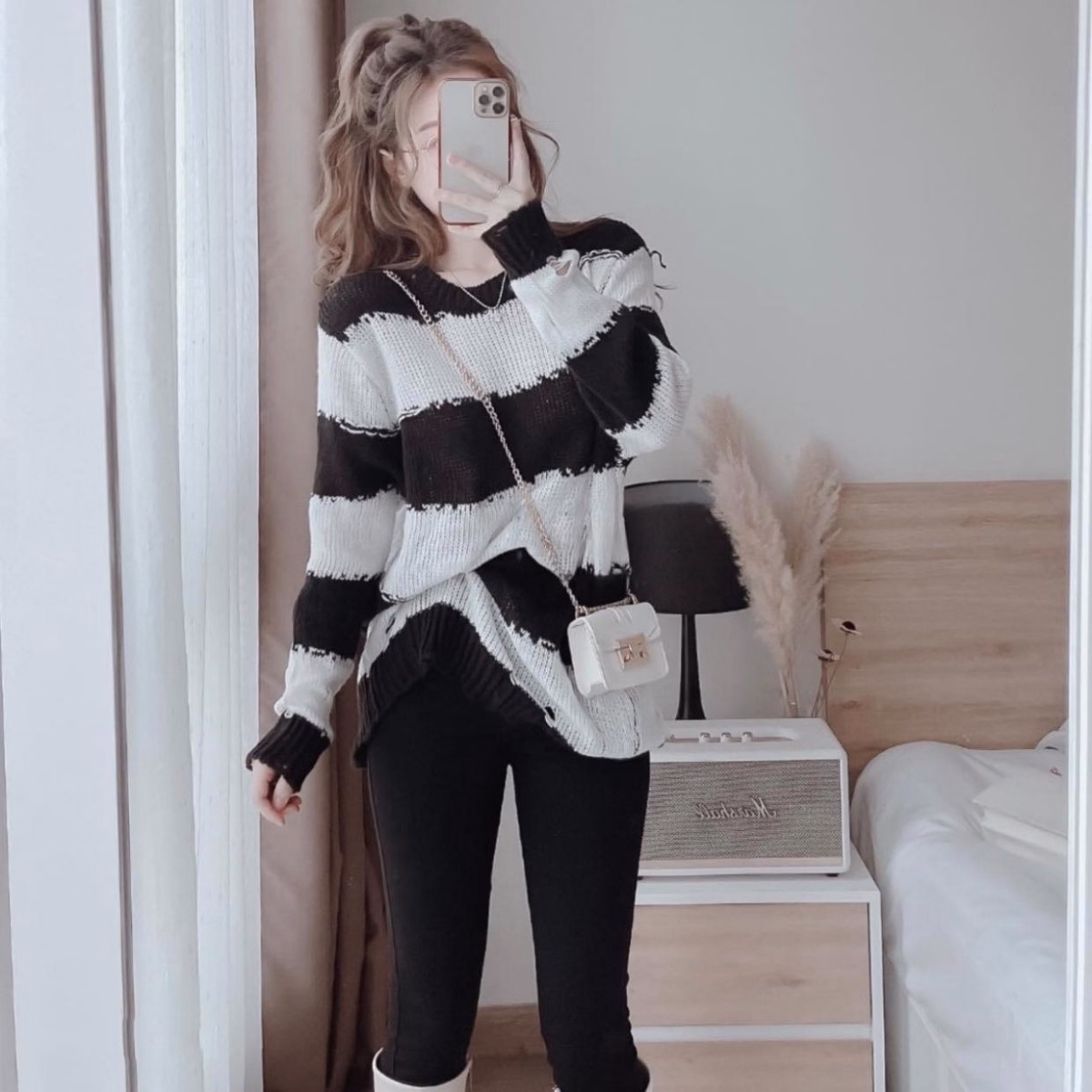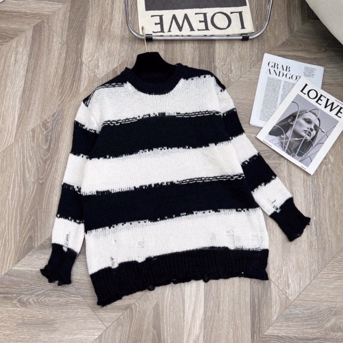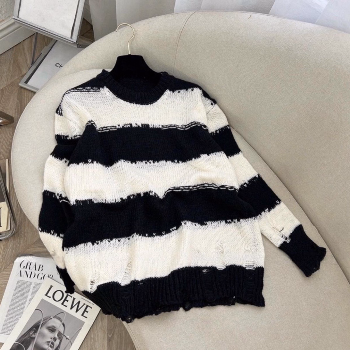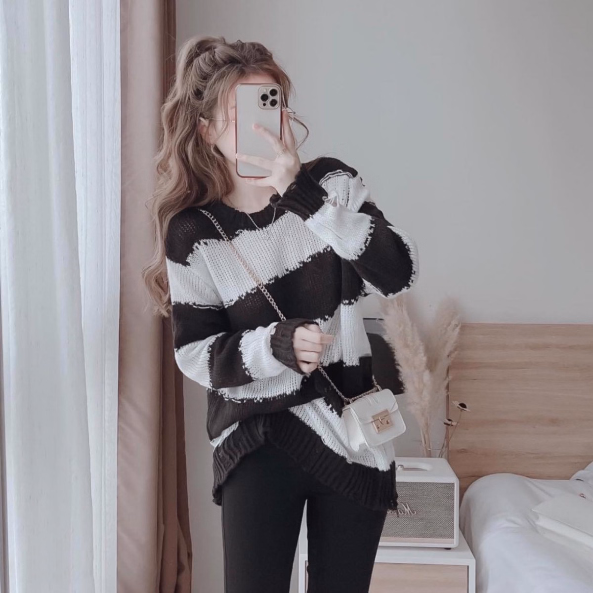 Áo Len Dệt Kim Tay Dài Sọc Đen Trắng Cá Tính – Vanass