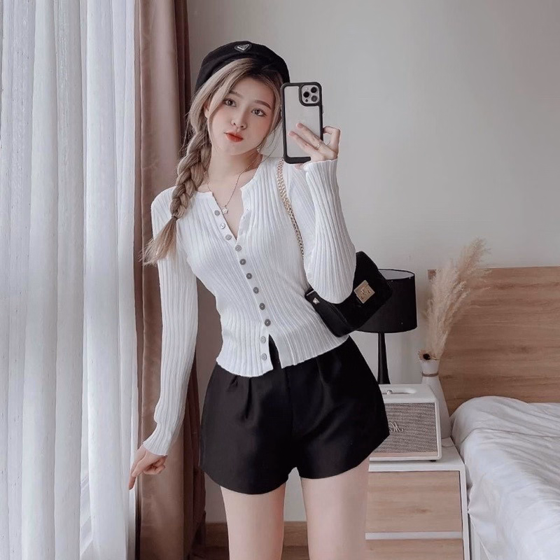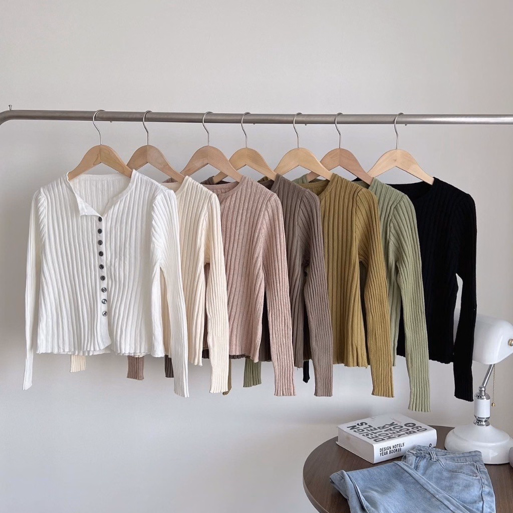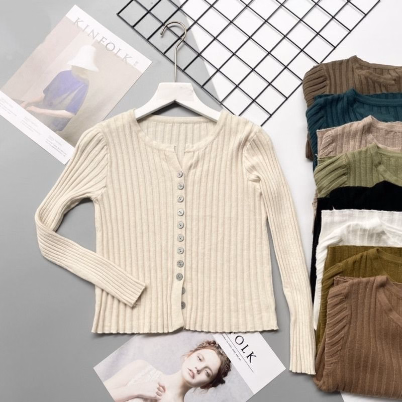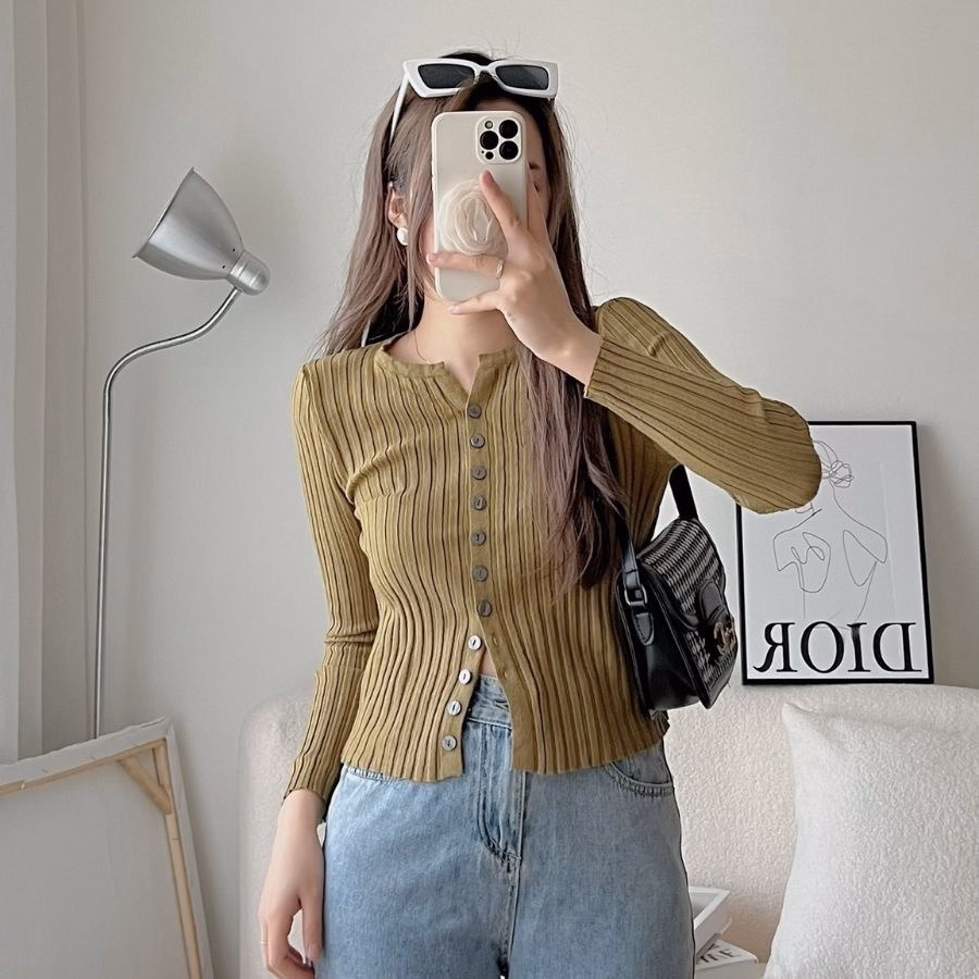 Áo Len Đũa Dài Tay Cổ Tròn Khuy Giữa Phối 11 Khuy Phong Cách Hàn Quốc Sldca73 – Diepchi Fashion