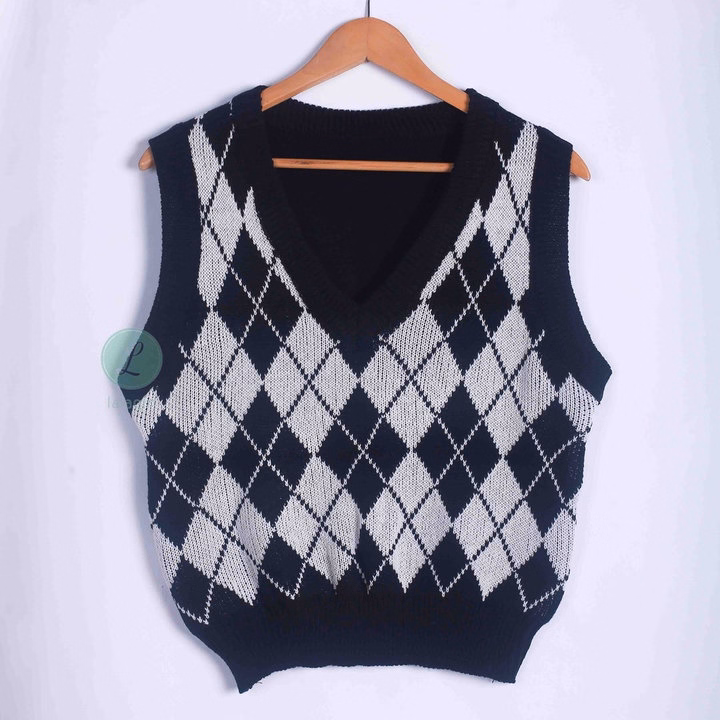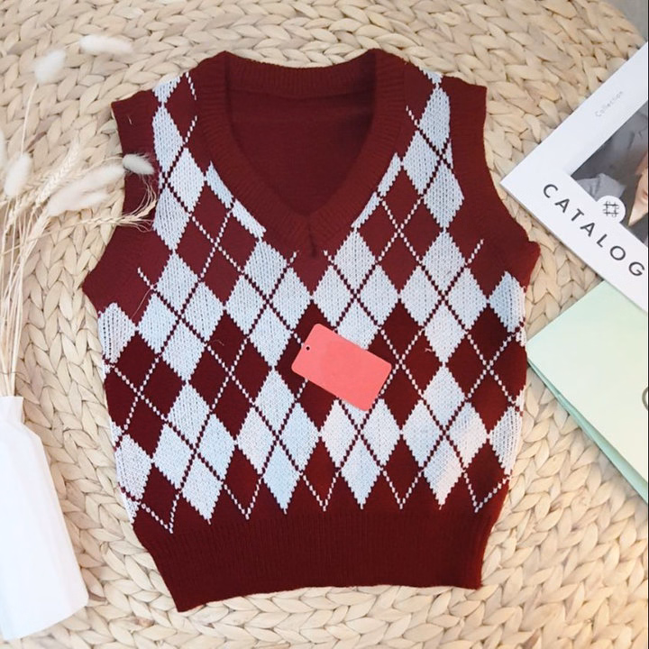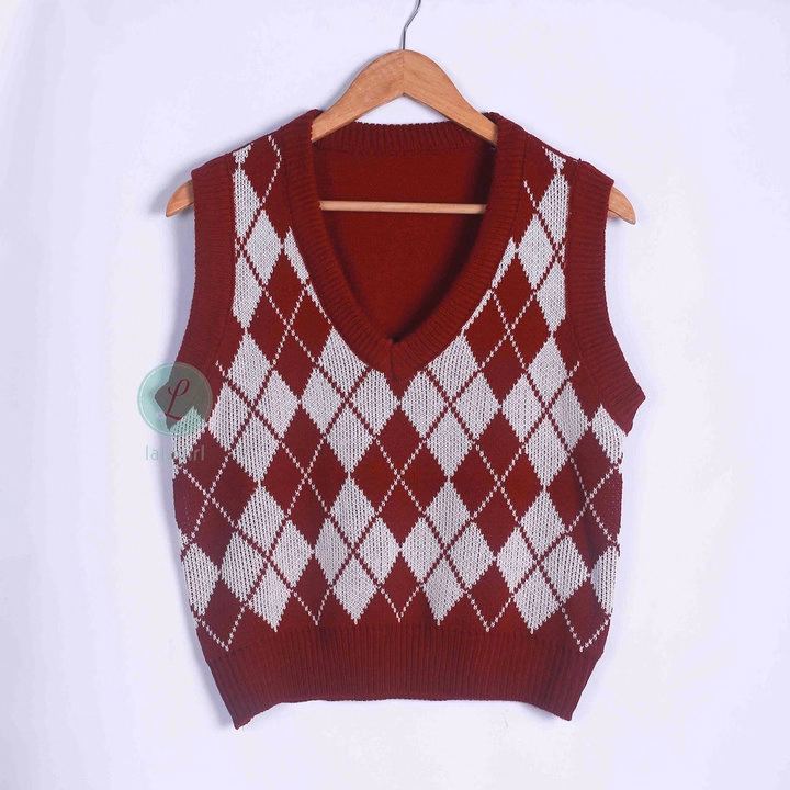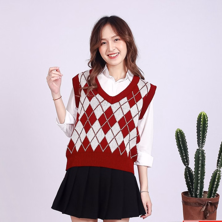 Áo Len Gile Dáng Rộng Họa Tiết Hình Quả Trám Phong Cách Vintage