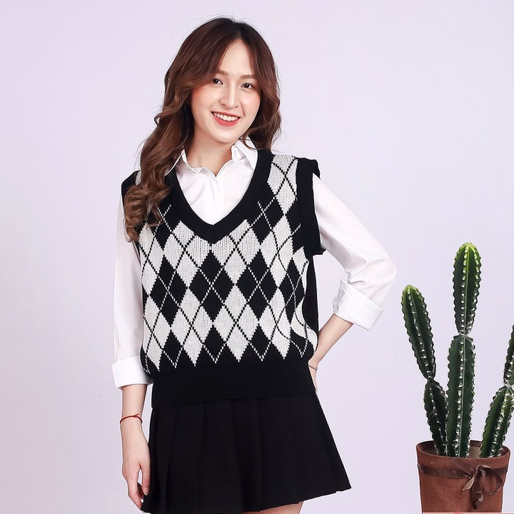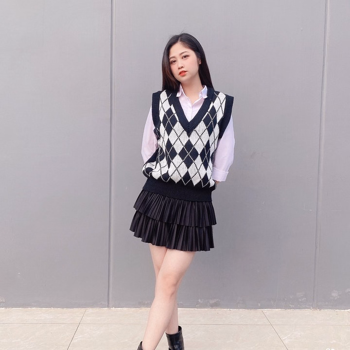 – Tone màu trẻ trung, phù hợp với giới trẻ hiện nay. Thiết kế gile giúp chiếc áo dễ mix với áo phông, áo sơ mi bên trong…. Khi mix cùng chân váy tạo nên bộ đồ mang phong cách Hàn Quốc nhẹ nhàng, nữ tính