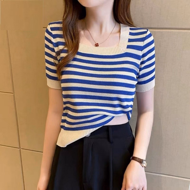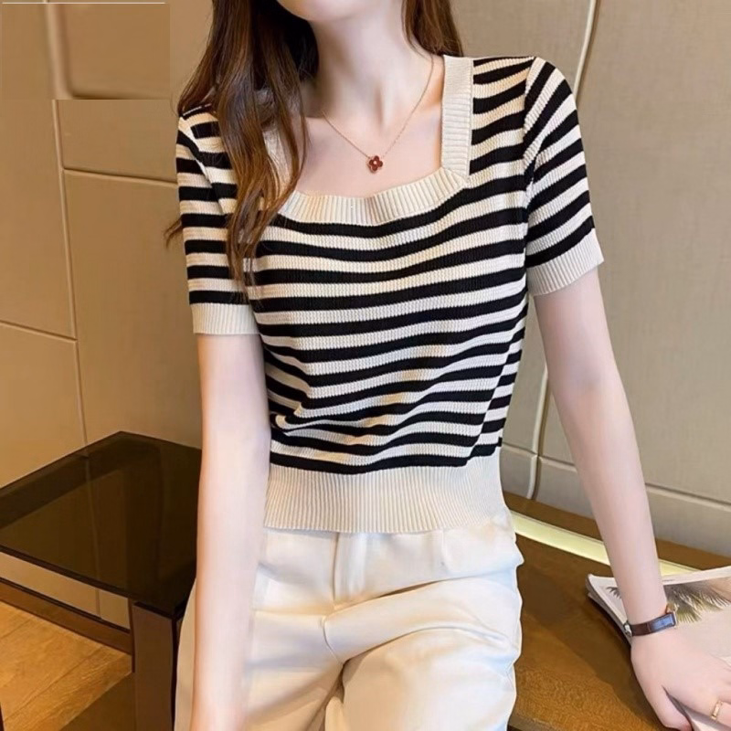 Áo Len Montoghi Cổ Vuông Họa Tiết Kẻ Ngang Mẫu Mới Sldca181 – Diepchi Fashion
