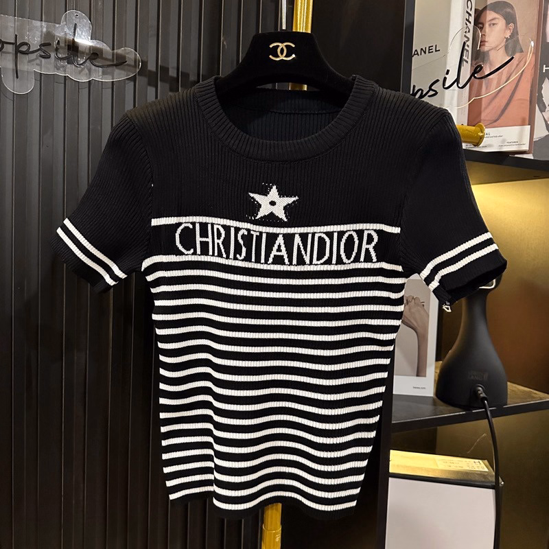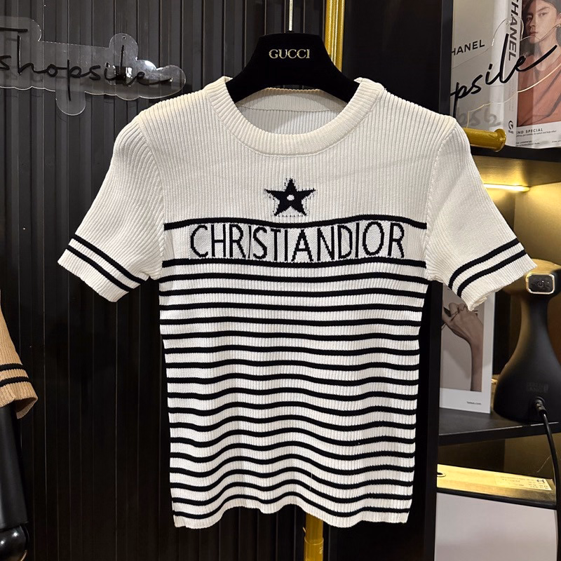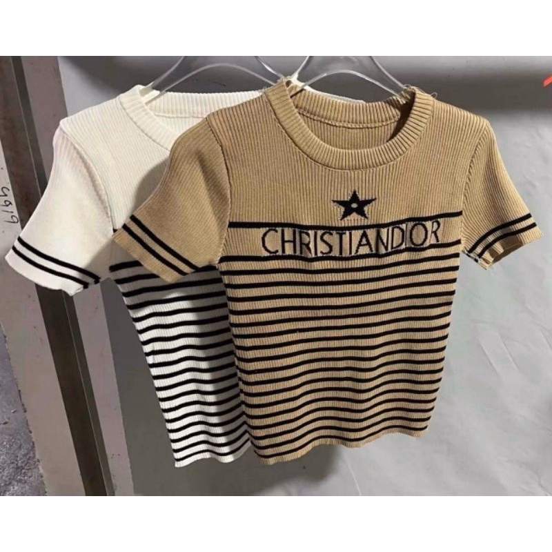Áo Len Montoghi Nữ Họa Tiết Kẻ Ngang Kết Hợp Ngôi Sao In Chữ Cd Sldca170- Diepchi Fashion