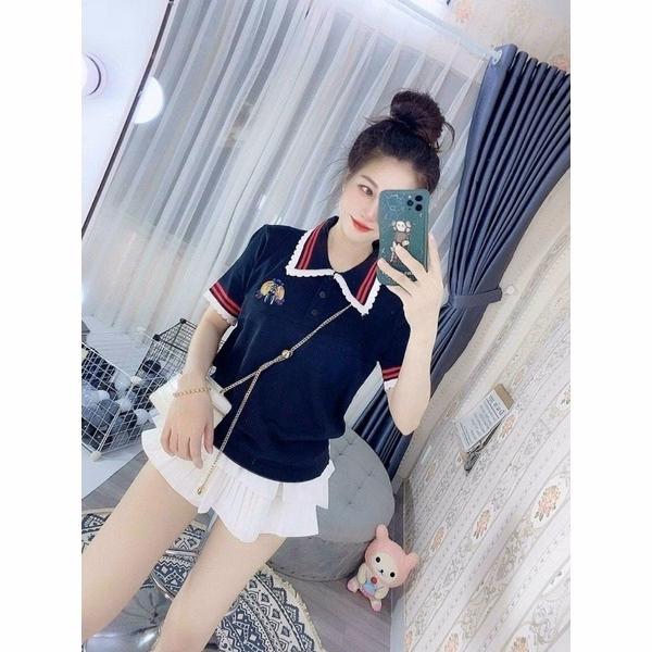 – Mẫu áo ngắn tay, cổ bẻ kiểu đức, kiểu sáng đơn giản, basic, không sợ lỗi mode