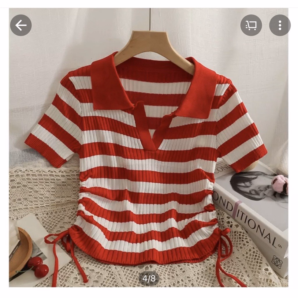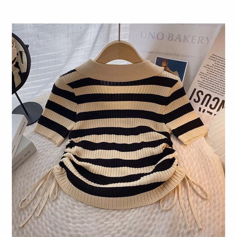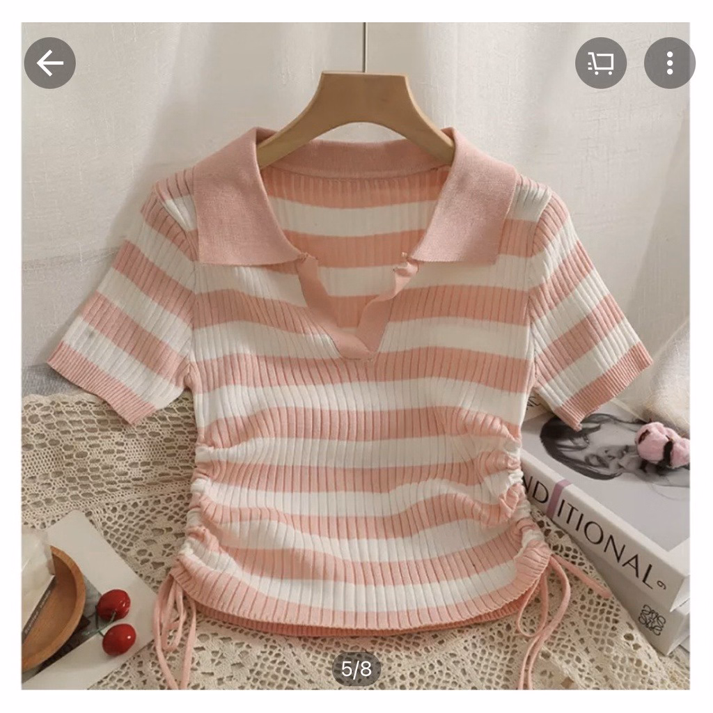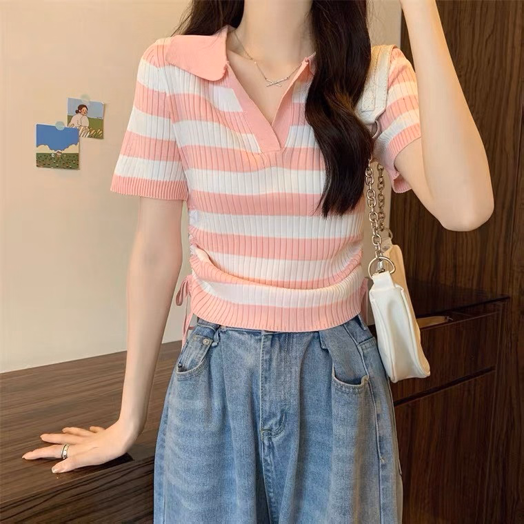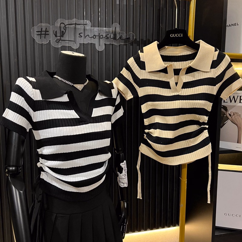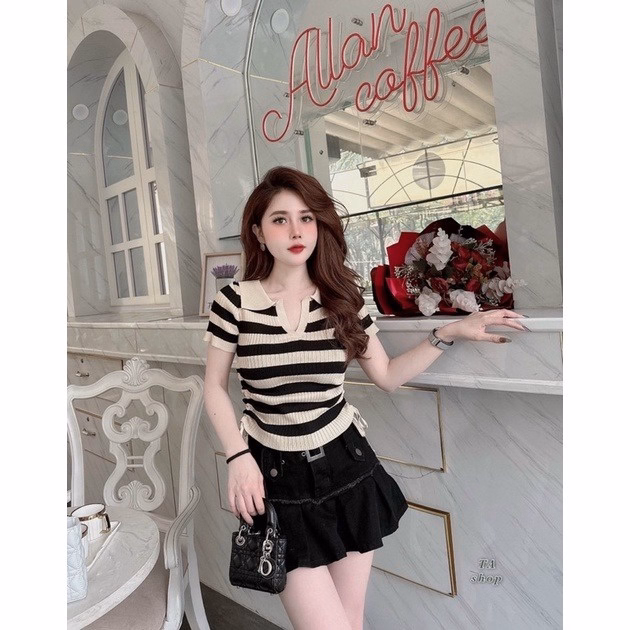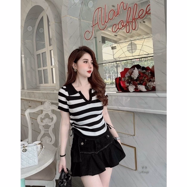 Áo Len Polo Họa Tiết Kẻ Ngang Phối Dây Rút 2 Bên Siêu Xinh Sldca165 – Diepchi Fashion