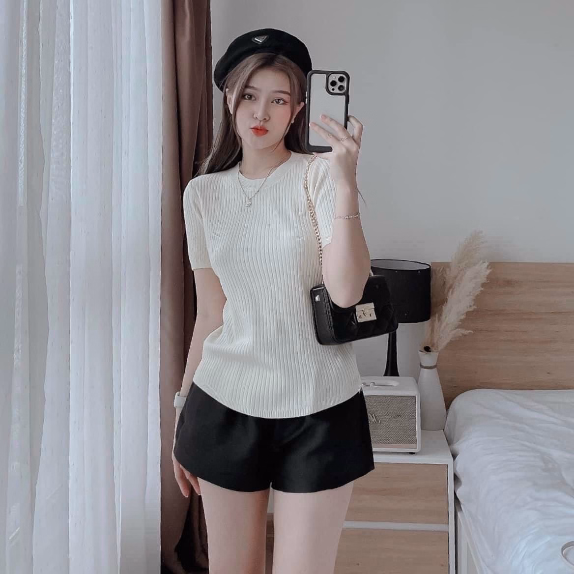 Thông tin sản phẩm: Áo Len Tăm Hàn Quốc Cộc Tay Dáng Ôm Cổ Tròn – Be Yourself
