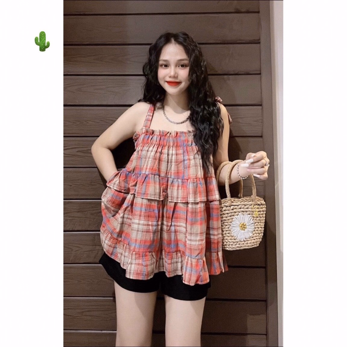 Áo Nữ Baby Doll Kẻ Caro Thắt Nơ Cột Vai – Ausa House