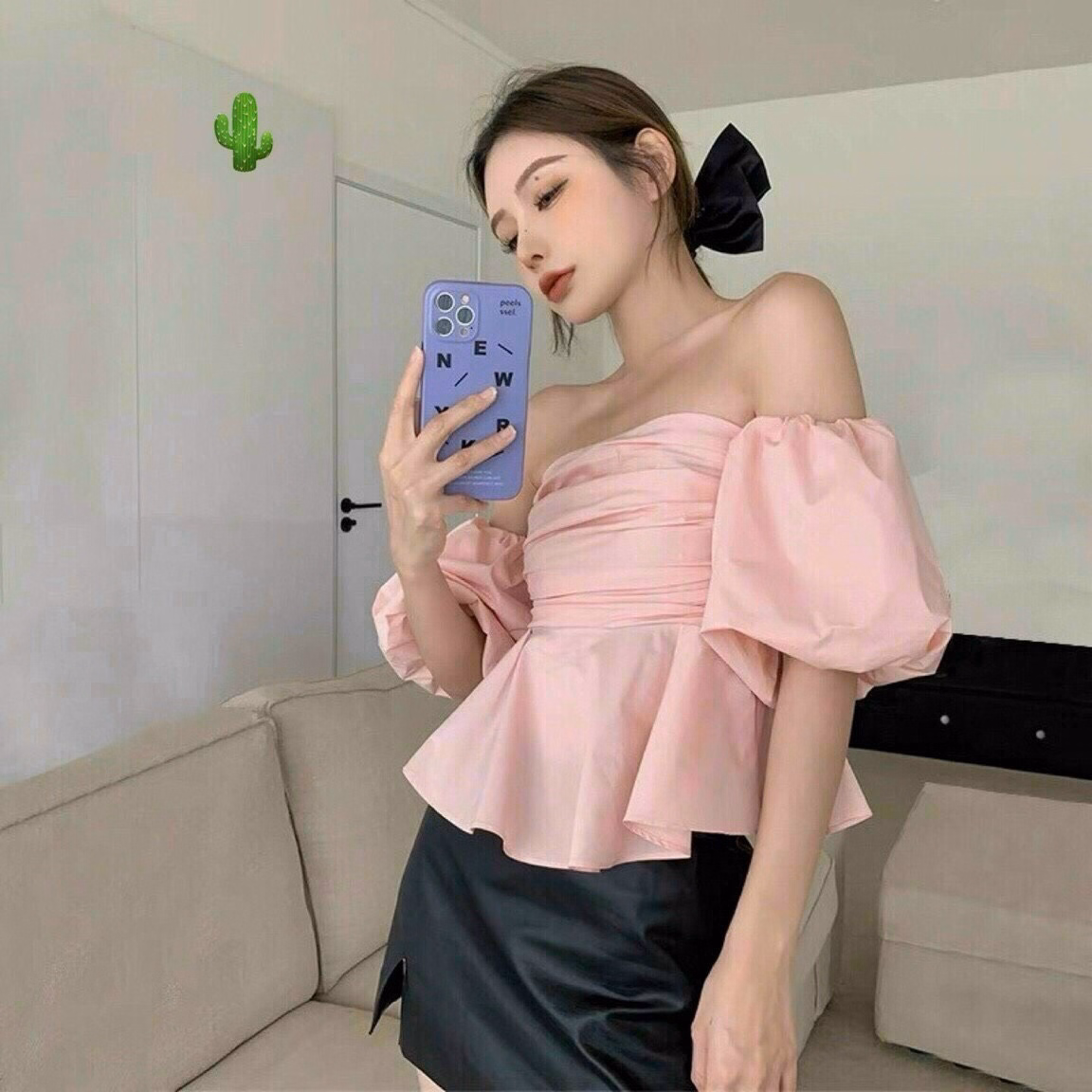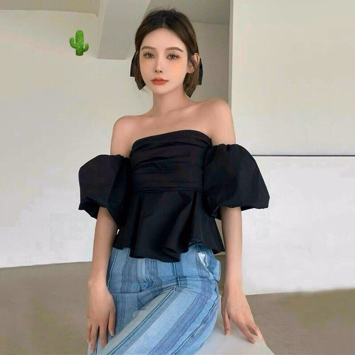 Áo Nữ Bẹt Vai Nhúng Tay Phồng Bí Vải Kate – Ausa House