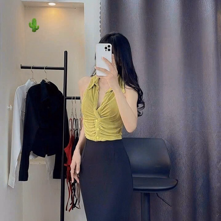 Áo Nữ Cổ Trụ Vải Nhung Lửng – Ausa House