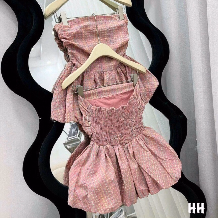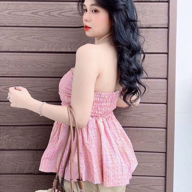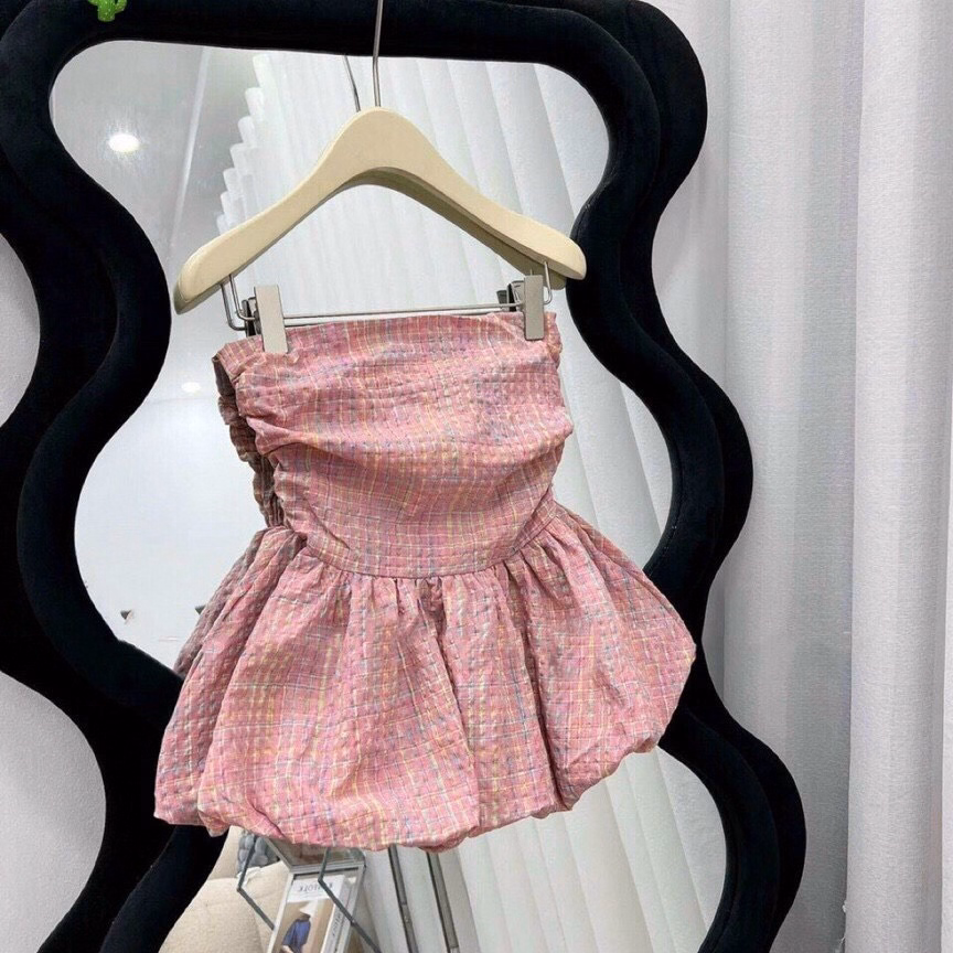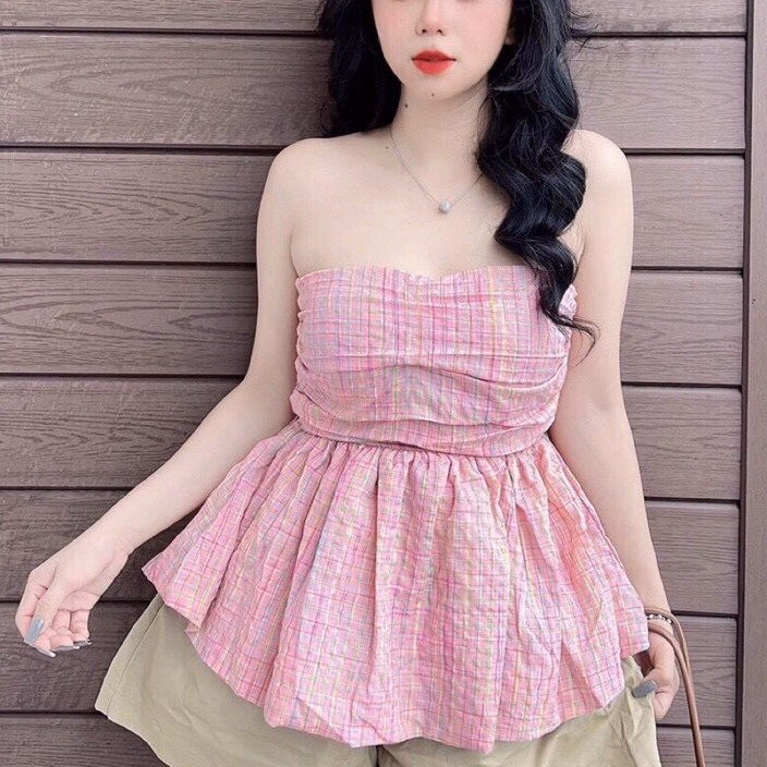 Áo Nữ Ống Bí Xèo Caro Hồng – Ausa House