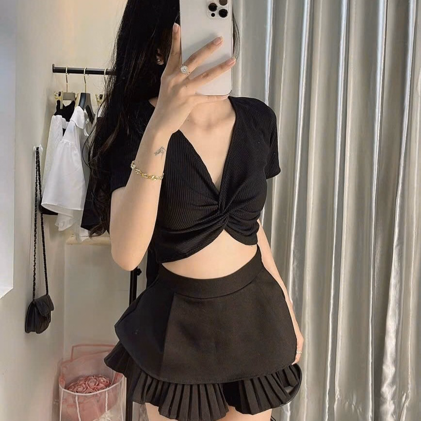 Áo Nữ Thun Gân Kiểu Xoắn Eo – Ausa House