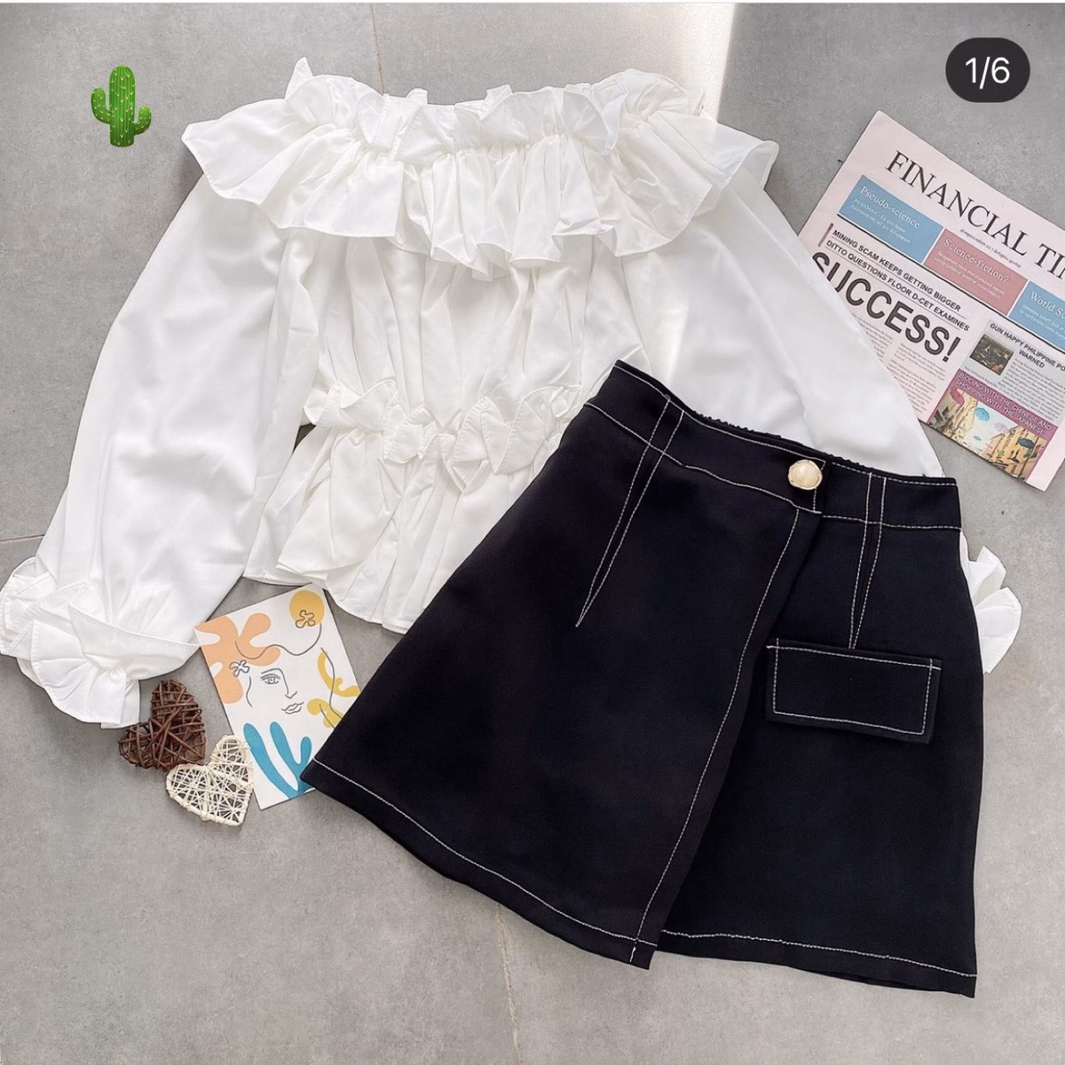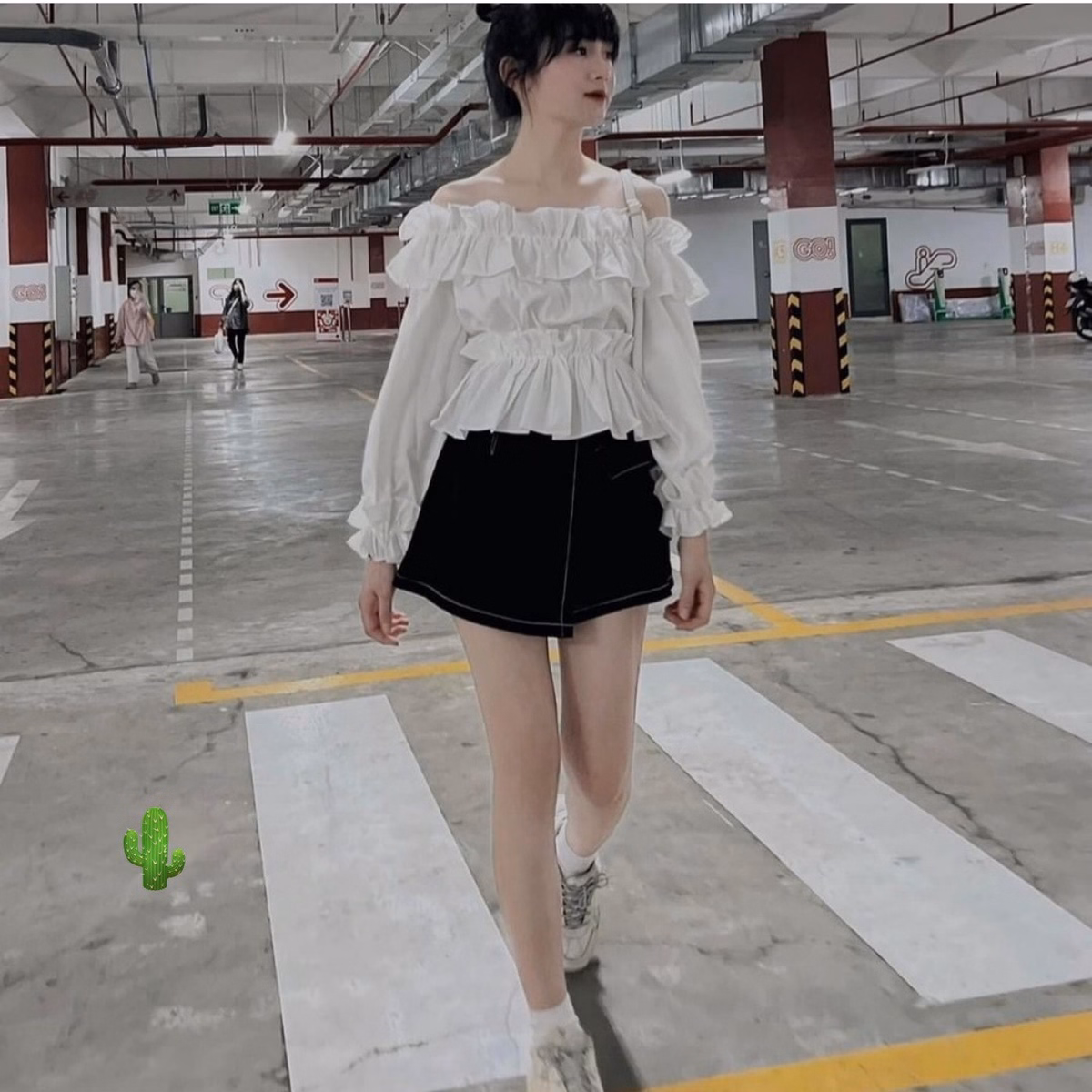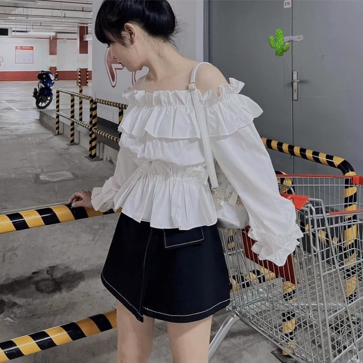 Áo Nữ Tiểu Thư Bẹt Vai Bèo Nhúm – Ausa House
