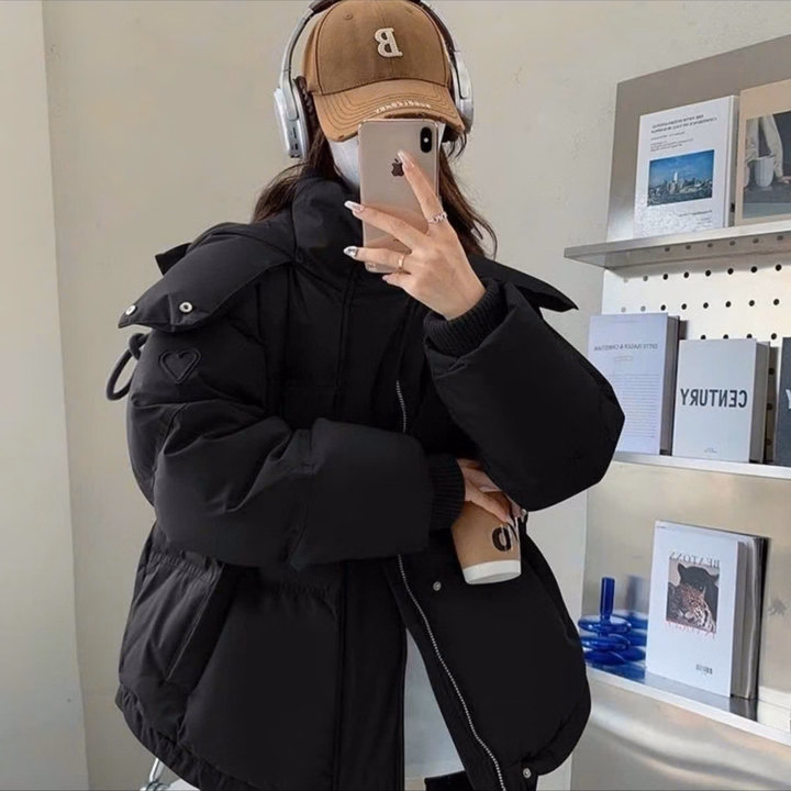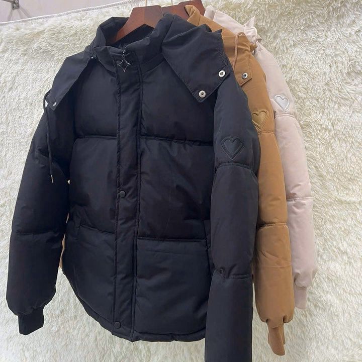 Phao thêu tim mũ rút dây.Mũ có thể tháo rời ạ. Chấp mọi thời tiết.