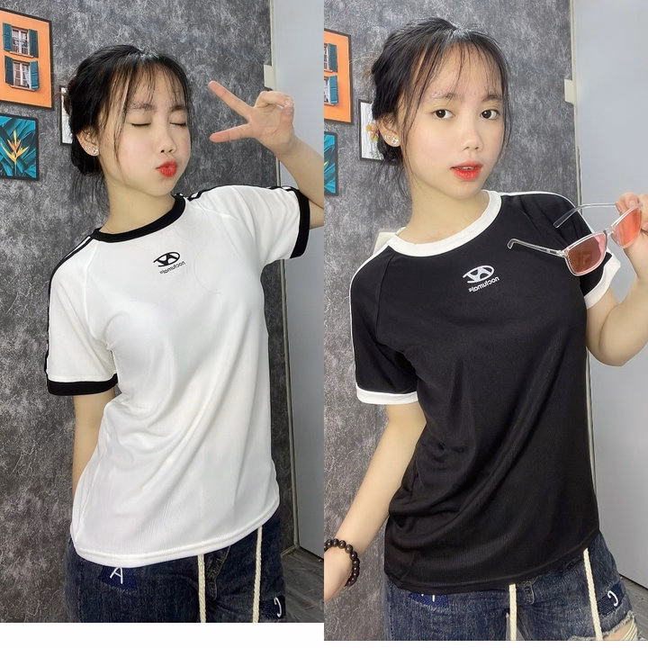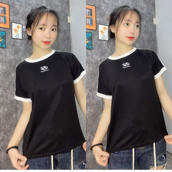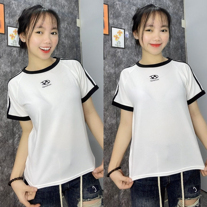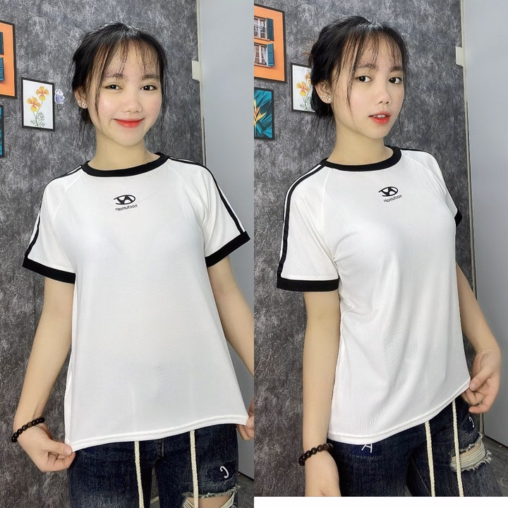 Áo Phông, Áo Thun Thái Nữ Dáng Ngắn Bo Rip Kẻ 2 Viền Rót Tay, Form Vừa ,Co Dãn Tốt — In Chữ N -Nocturnal Viền Tay