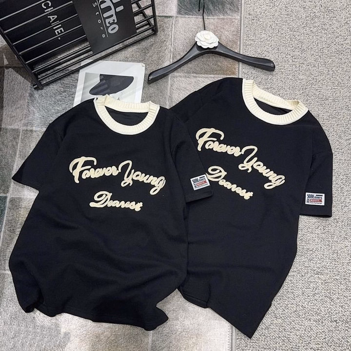 Áo Phông Cộc Tay Cổ Bo Họa Tiết Chữ Forever Young Cực Xinh Dành Cho Bạn Nữ Slcxa256 – Chipxinhxk