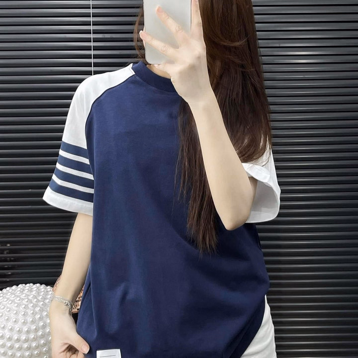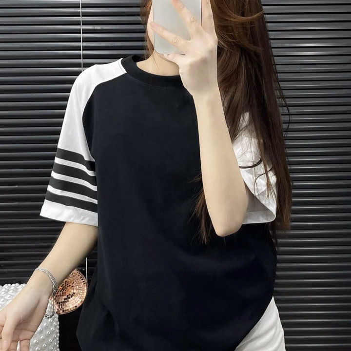 Áo Phông Cotton Khô Form Rộng Tay Lỡ Kẻ 4 Sọc Tay, Áo Phông Mùa Hè