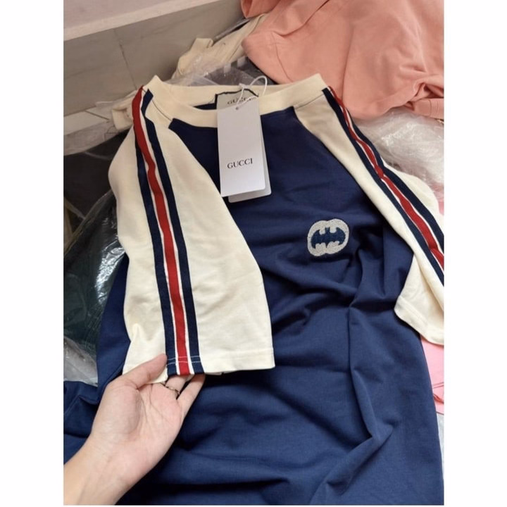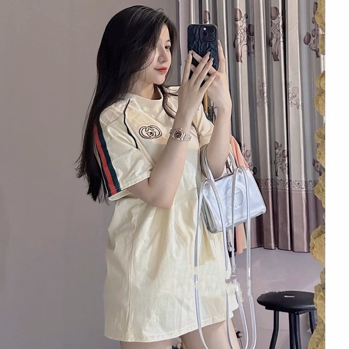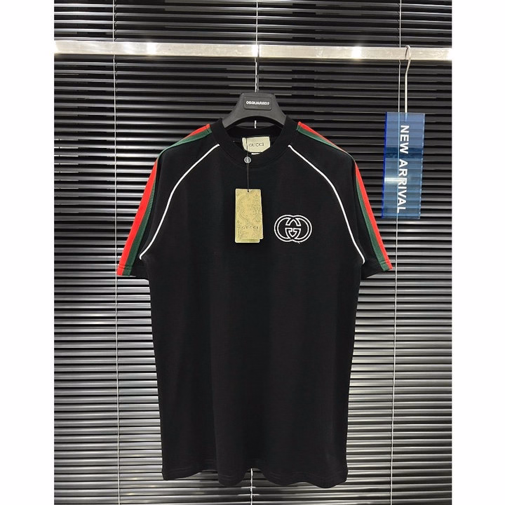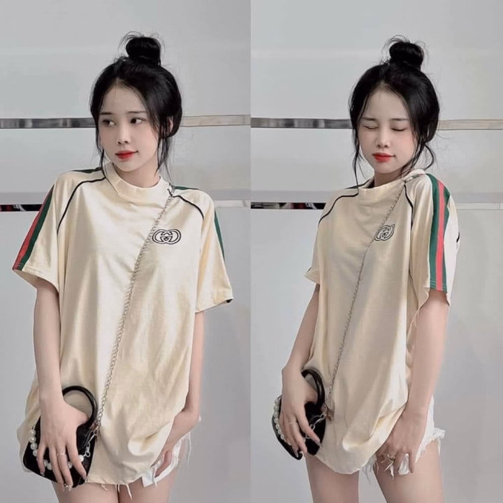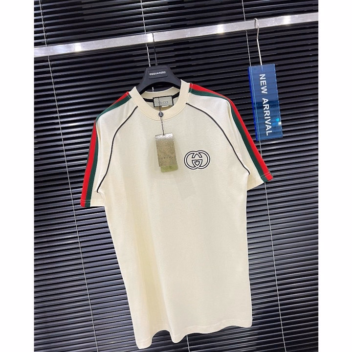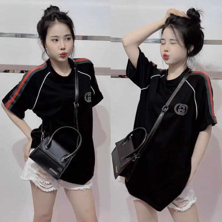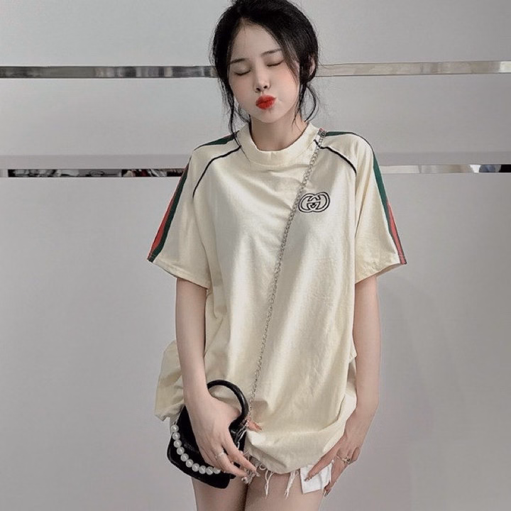 Áo Phông Cotton Khô Guci Gg Phối Viền Tay Form Rộng, Hàng Đẹp Bán Shop Thoải Mái