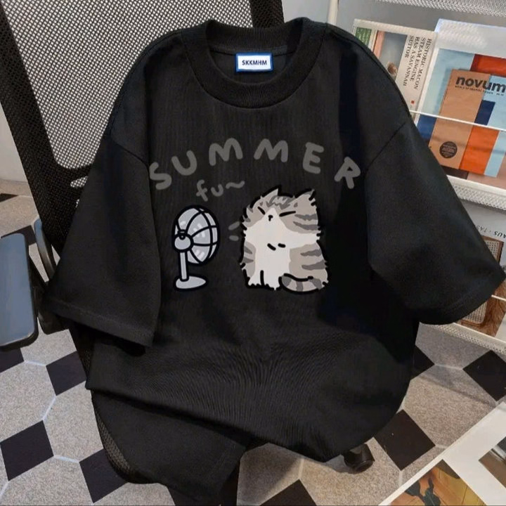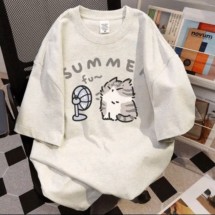 – Tên Sản phẩm: Áo phông from rộng tay lỡ chất vải cotton – mèo mùa hè