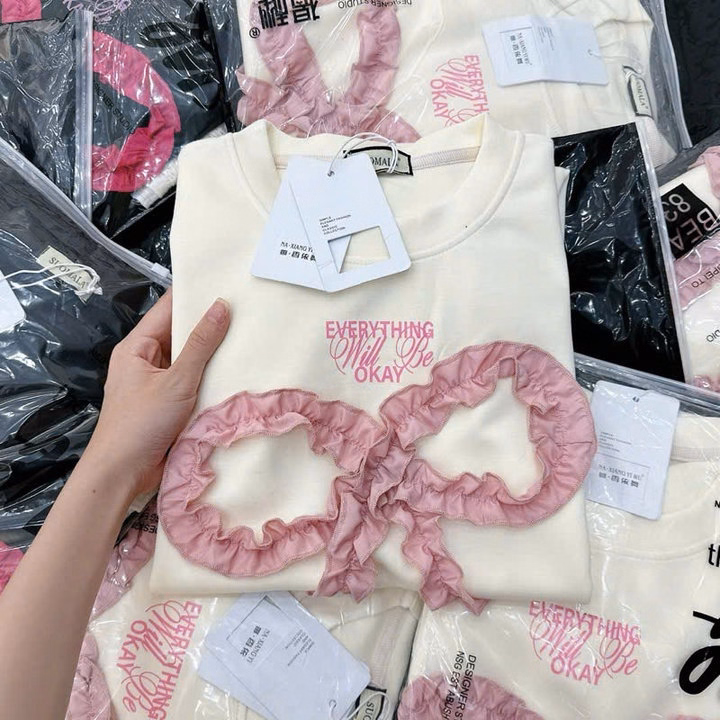 Áo Phông Nơ Rúm Form Rộng Tay Lỡ Hình Nơ Rúm Cotton Su