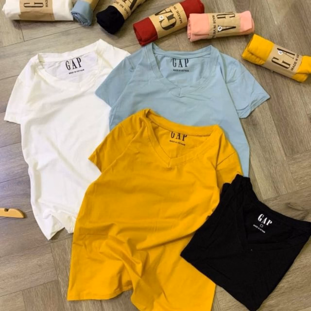 Áo Phông Nữ, Áo Gap Chất Cotton Mềm Mịn Cổ Tim Nhiều Màu Năng Động Cá Tính – Dmastore