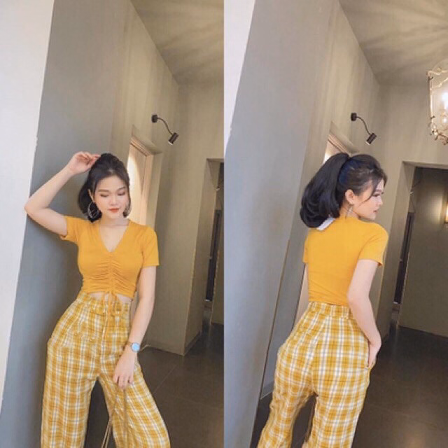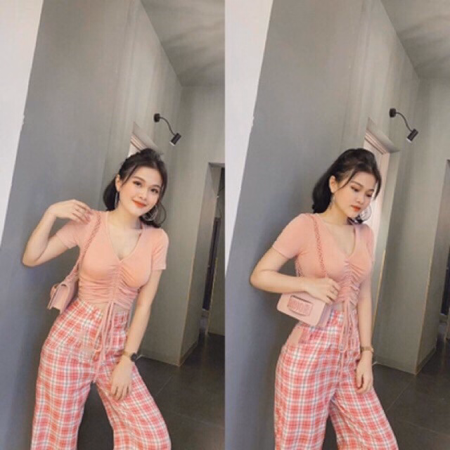 Tên sản phẩm: Áo Phông Nữ Dây Rút Cổ Tim Áo Thun Trơn Cộc Tay Nhiều Màu Kiểu Dáng Đẹp, Hợp Thời Trang P009 - Chốt Đi Store