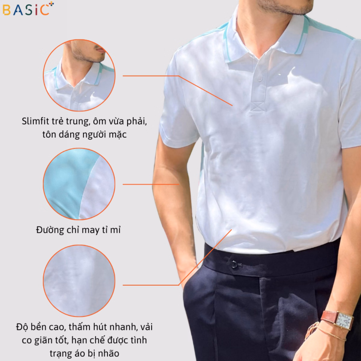 Basic Plus hiểu rằng chiếc áo tốt là chiếc áo mà khi bạn mặc lên phải thoải mái cho ngày dài nhiều hoạt động, có form dáng bắt mặt và thời trang, phù hợp với nhiều mục đích bạn sử dụng, màu sắc phải bền sau nhiều lần giặt và sử dụng, chất liệu tốt và luôn giúp bạn thoảng mát… chính vì vậy sản phẩm của Basic Plus được dệt từ chất liệu Poly Coolmax pique 4.215gsm.210tk, với độ co dãn cao, đàn hồi, thấm hút mồ hôi tốt, sản phẩm mềm mại và đặc biệt giữ được form áo sau mỗi lần giặt, nhiều màu sắc đa dạng với tông màu hot nhất hiện nay dành cho khách hàng.