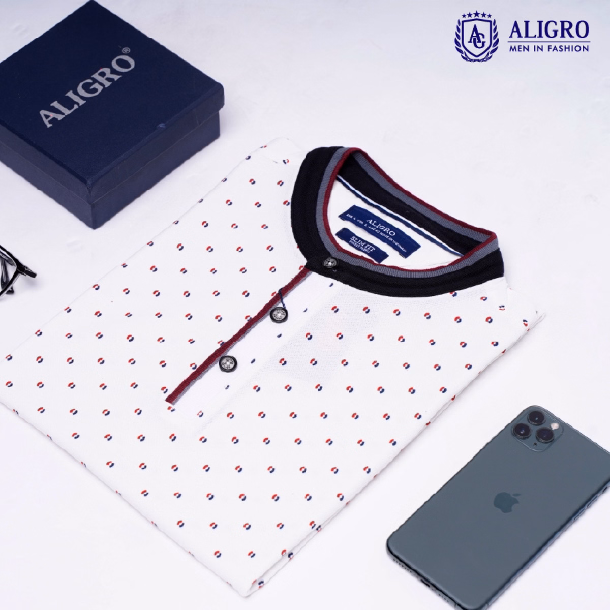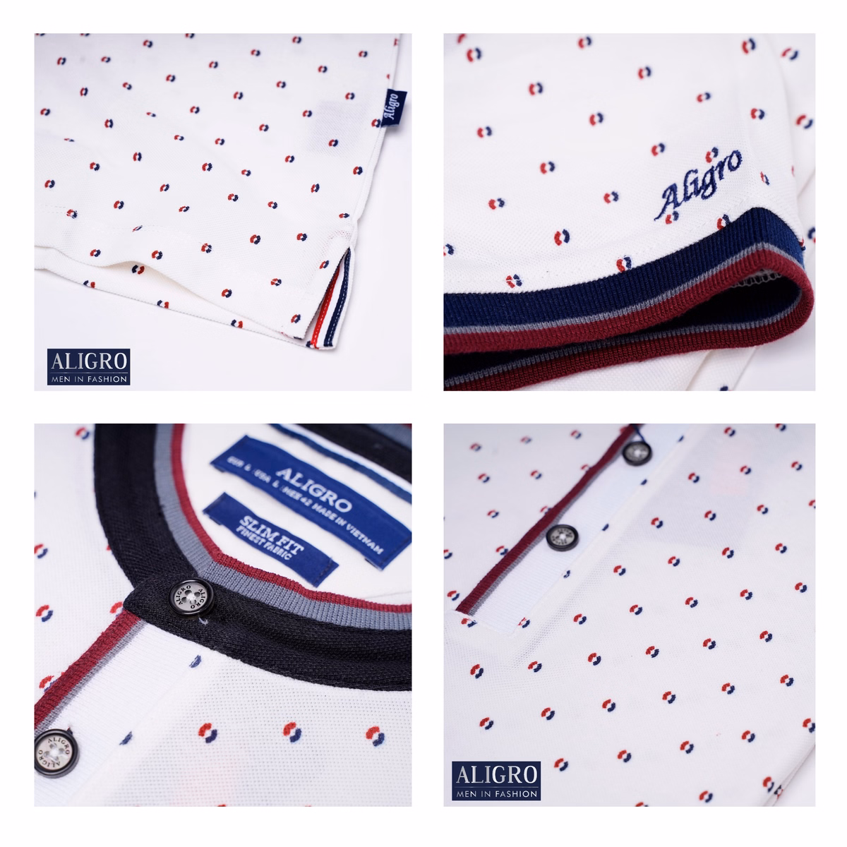 Áo Polo Nam Ngắn Tay Cổ Trụ Màu Trắng Hoạ Tiết Nhí Algplo35 – Aligro