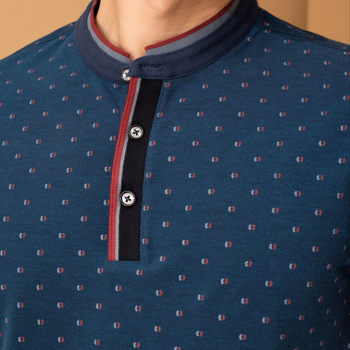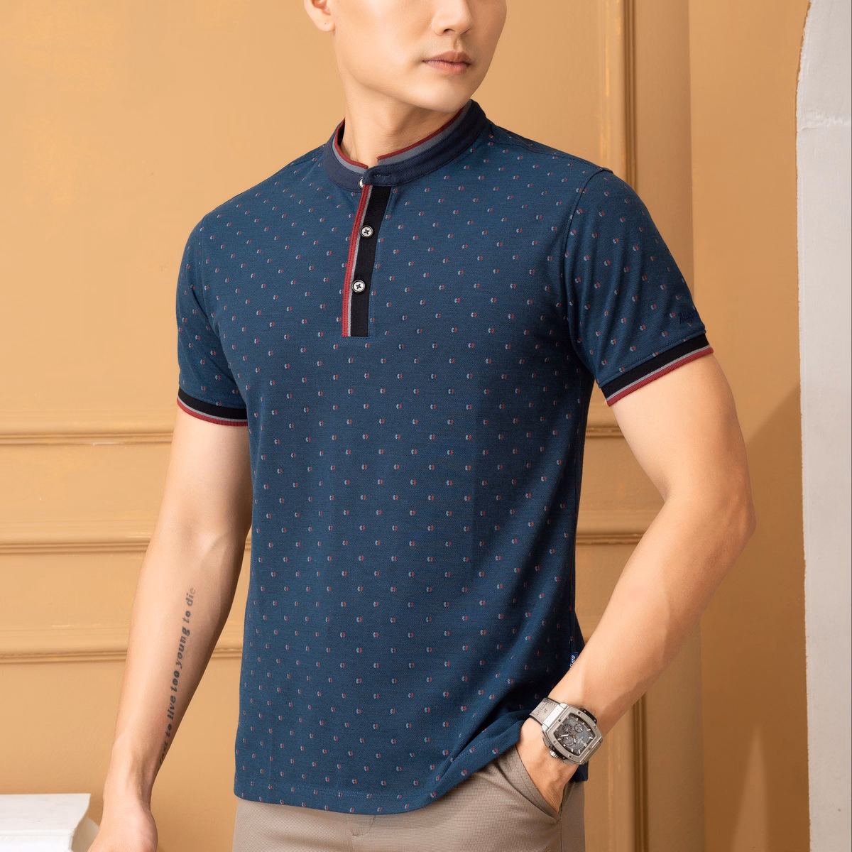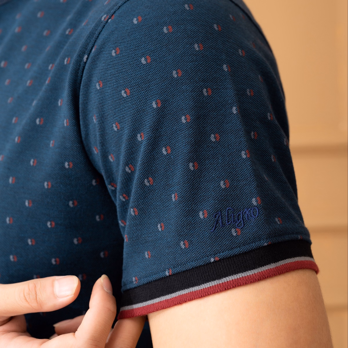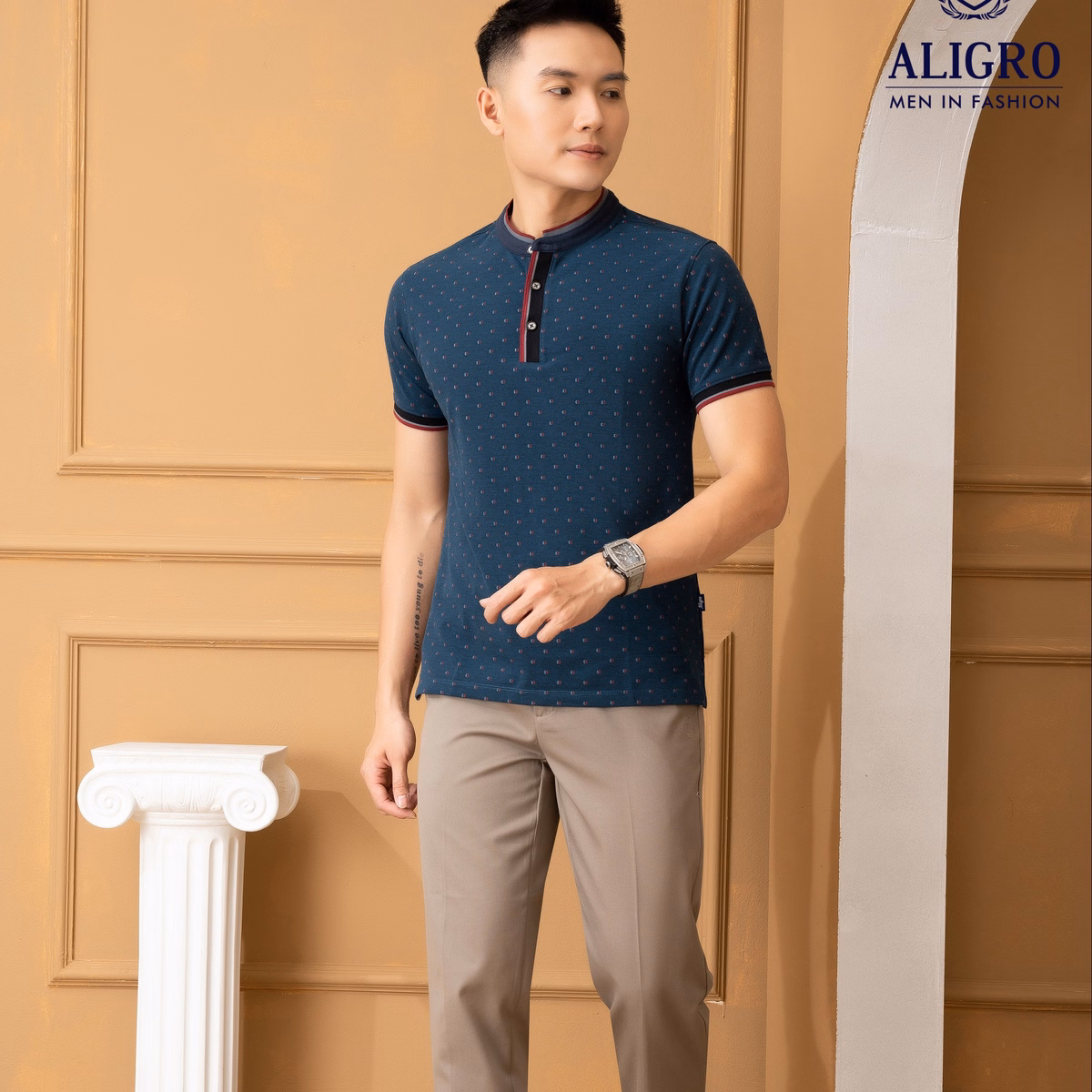 Áo Polo Nam Ngắn Tay Cổ Trụ Màu Xanh Két Hoạ Tiết Nhí Algplo36 – Aligro