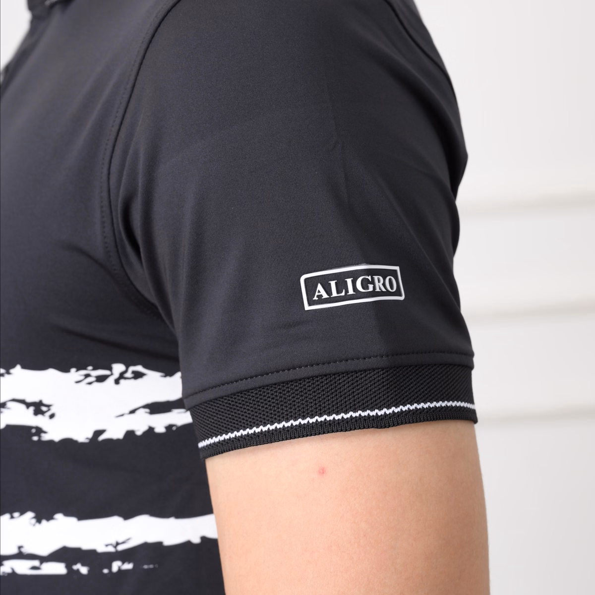 Áo Polo Nam Ngắn Tay Đen Kẻ Phối Ngang, Chất Vải Coolmax Cổ Bẻ Phối Bo Tay, Trẻ Trung, Năng Động Algplo73 – Aligro
