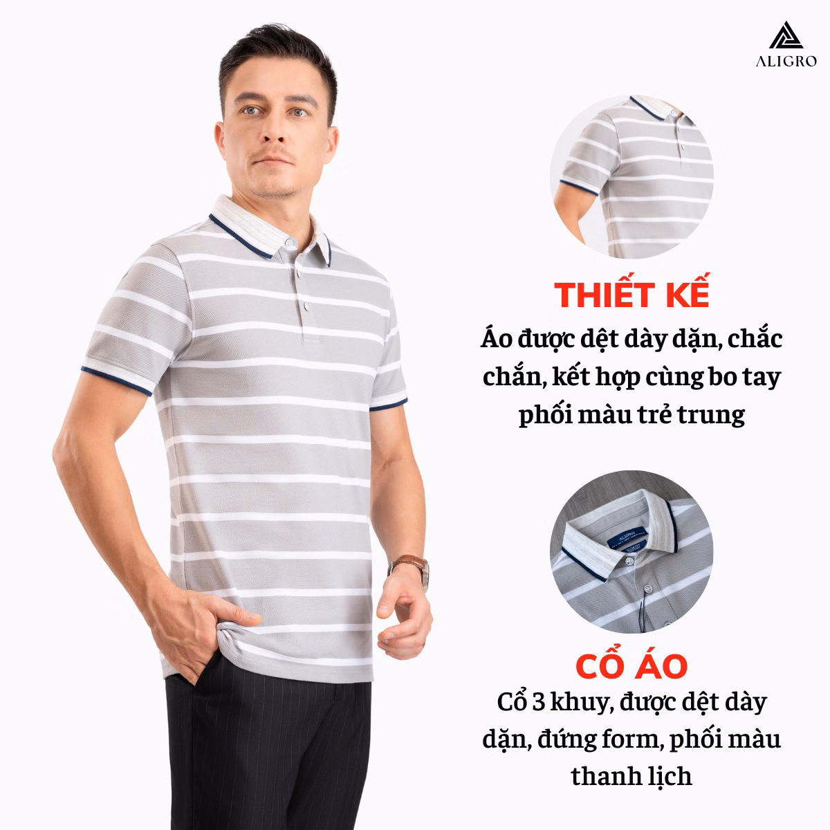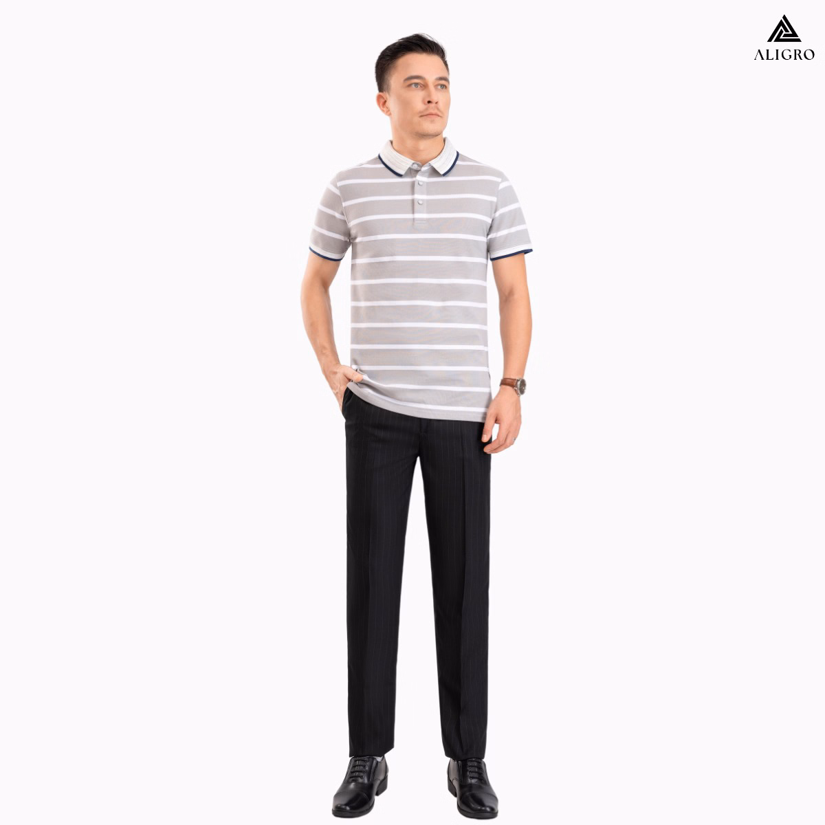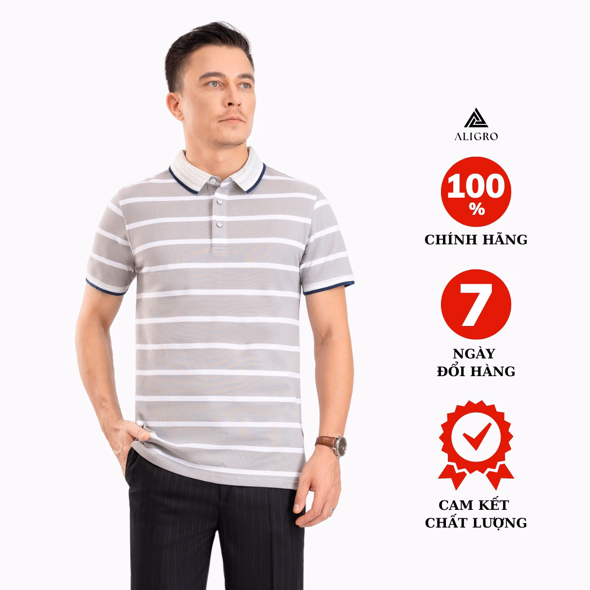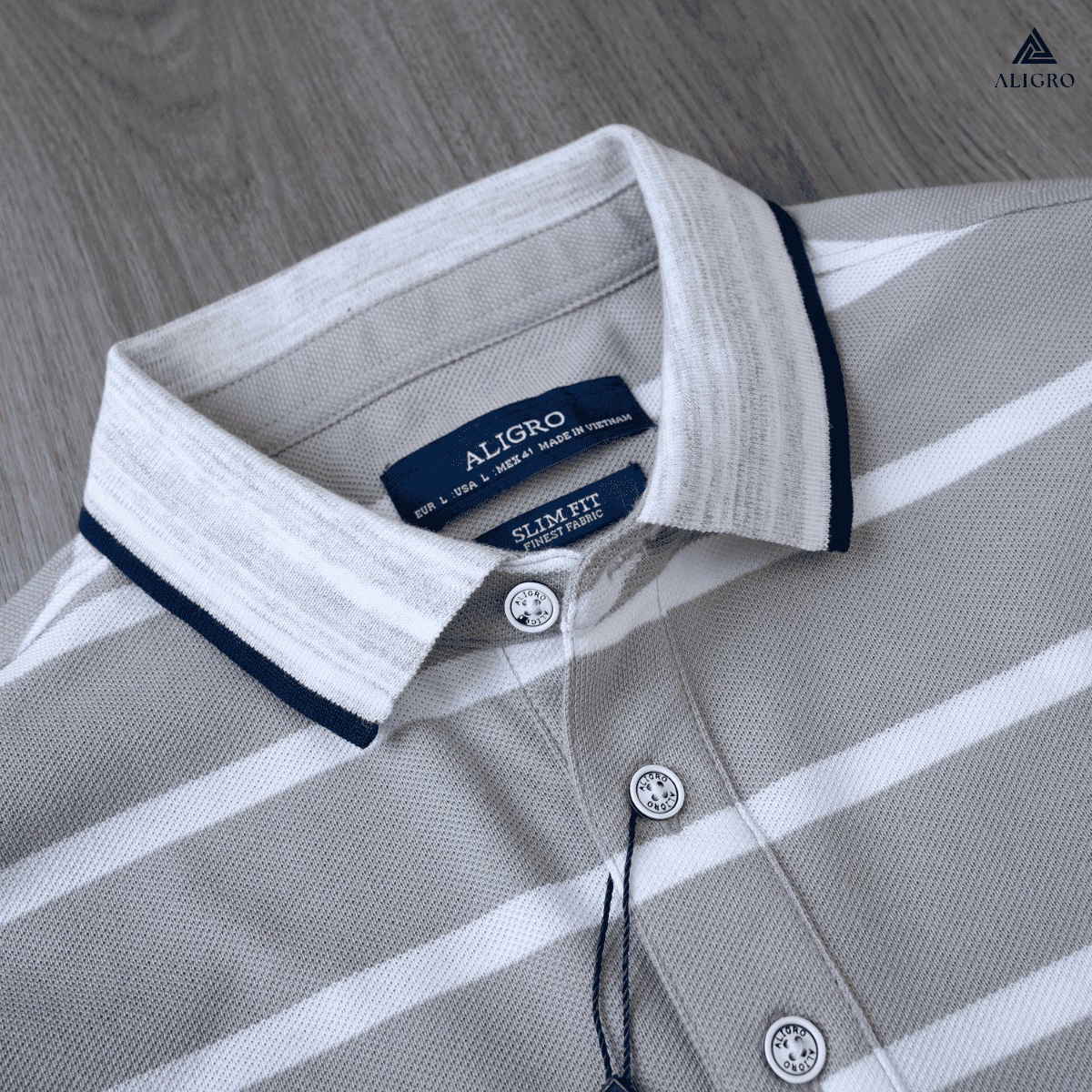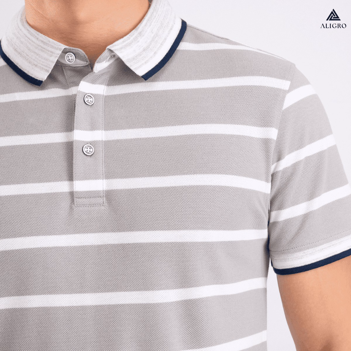 Áo Polo Nam Ngắn Tay Kẻ Ngang Ghi-Trắng Algplo89 – Aligro