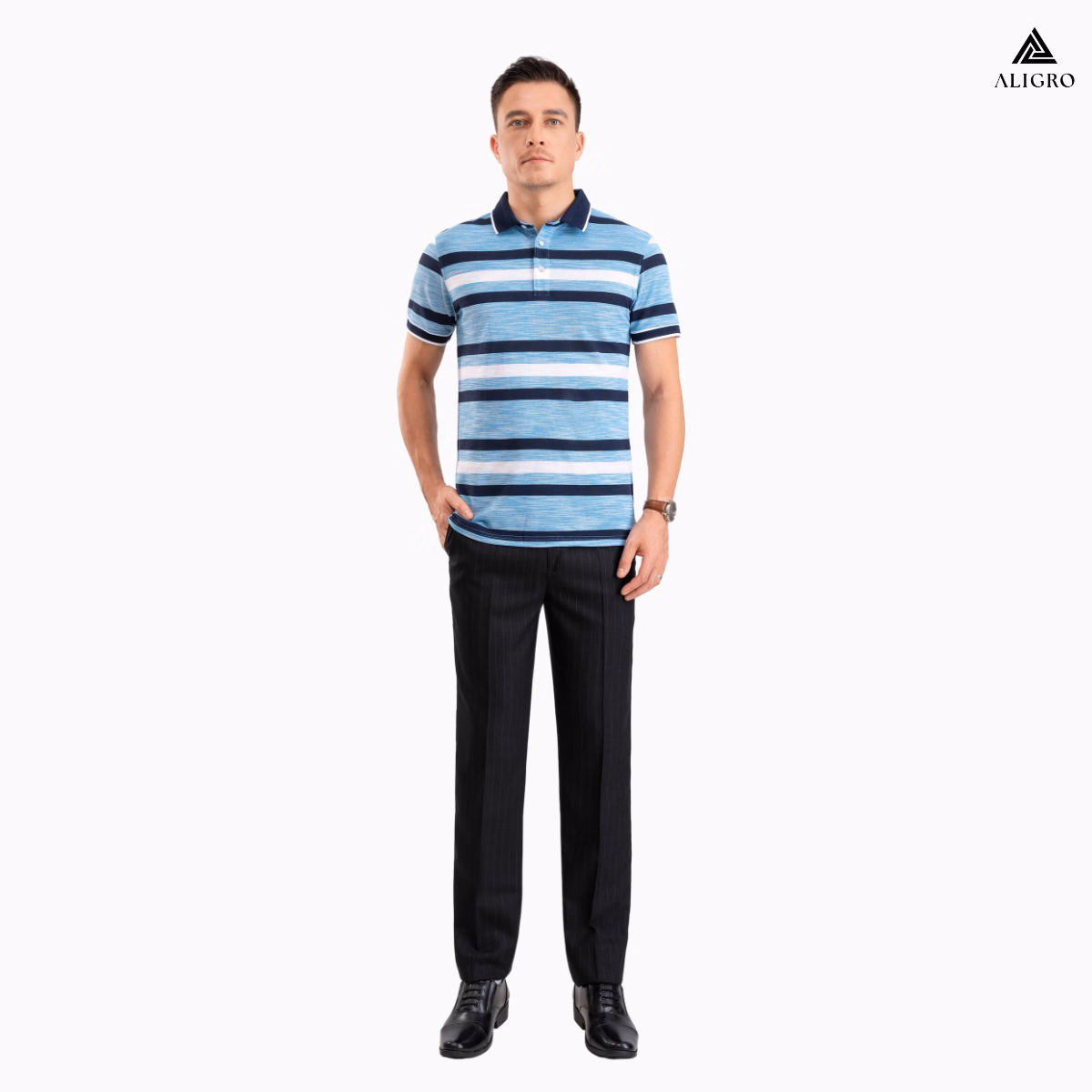 Áo Polo Nam Ngắn Tay Kẻ Ngang Xanh Dương-Navy Algplo86 – Aligro