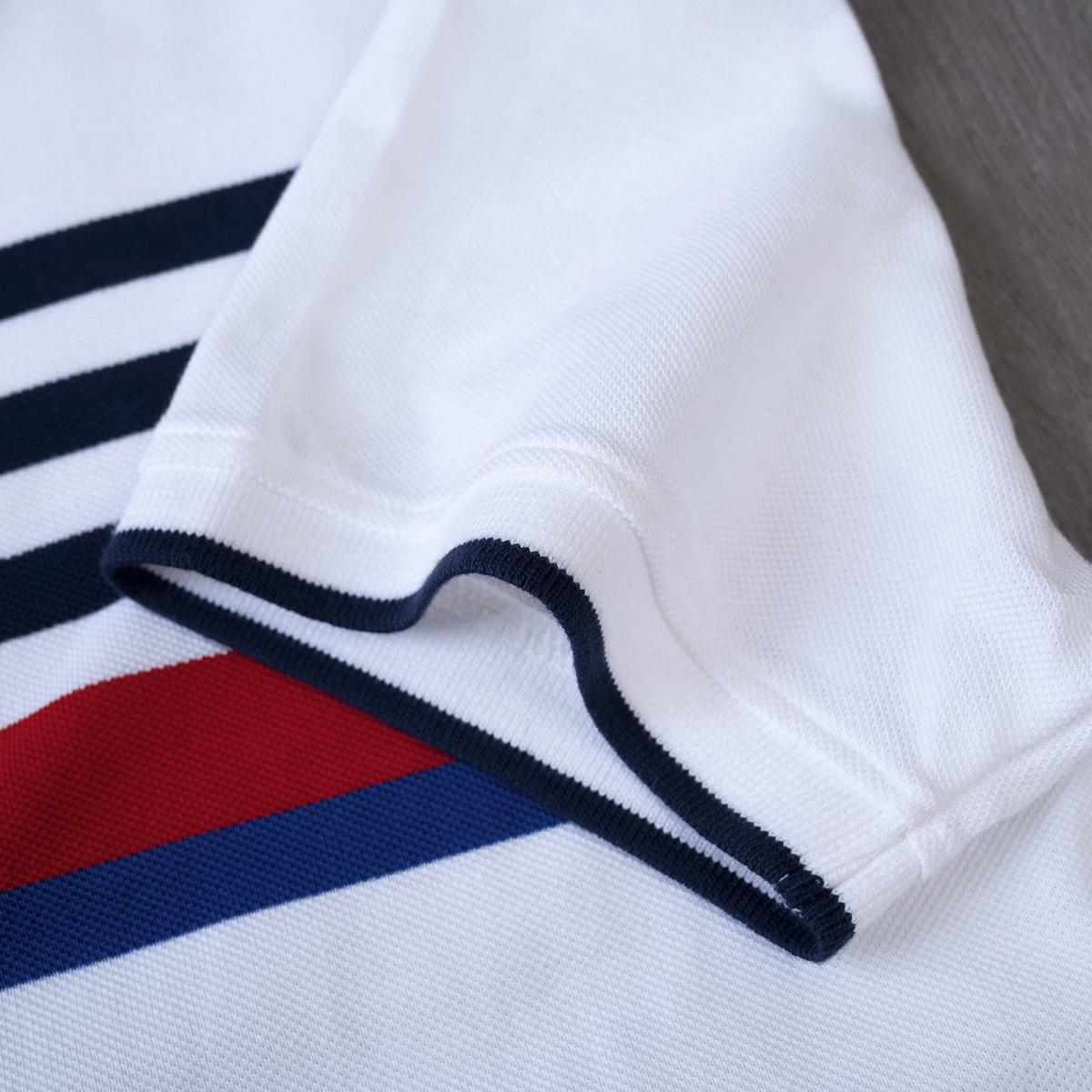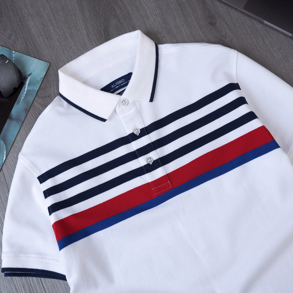 Áo Polo Nam Ngắn Tay Trắng Kẻ Ngang Navy-Đỏ-Xanh Algplo126 – Aligro