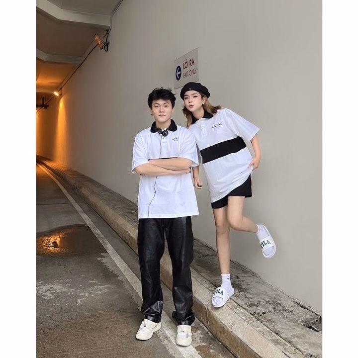 Áo Polo Nam Nữ Unisex Phối Đen Trắng Ti-Out